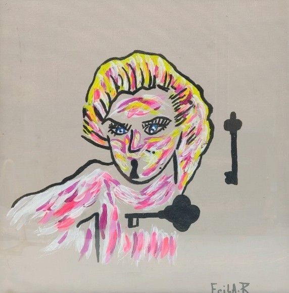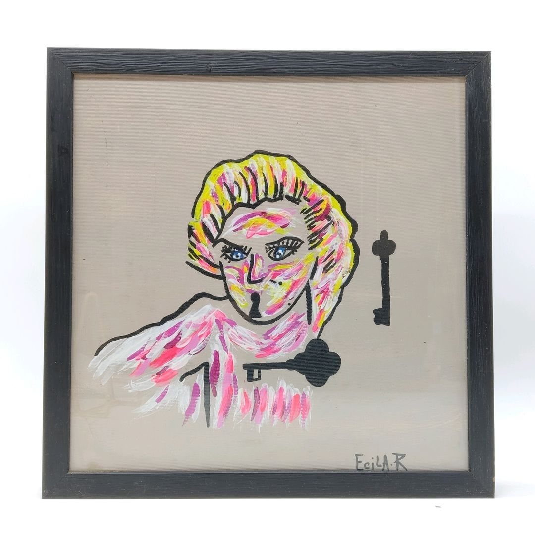 RUEISEL Ecila (1978-). Marilyn and her field of keys. Acrylic on cardboard, framed. 2018. H.32,8 x L.32,8 cm. Signed lower right - This lot available everywhere in France from € 12.24 - This lot available everywhere in Europe from € 18.00