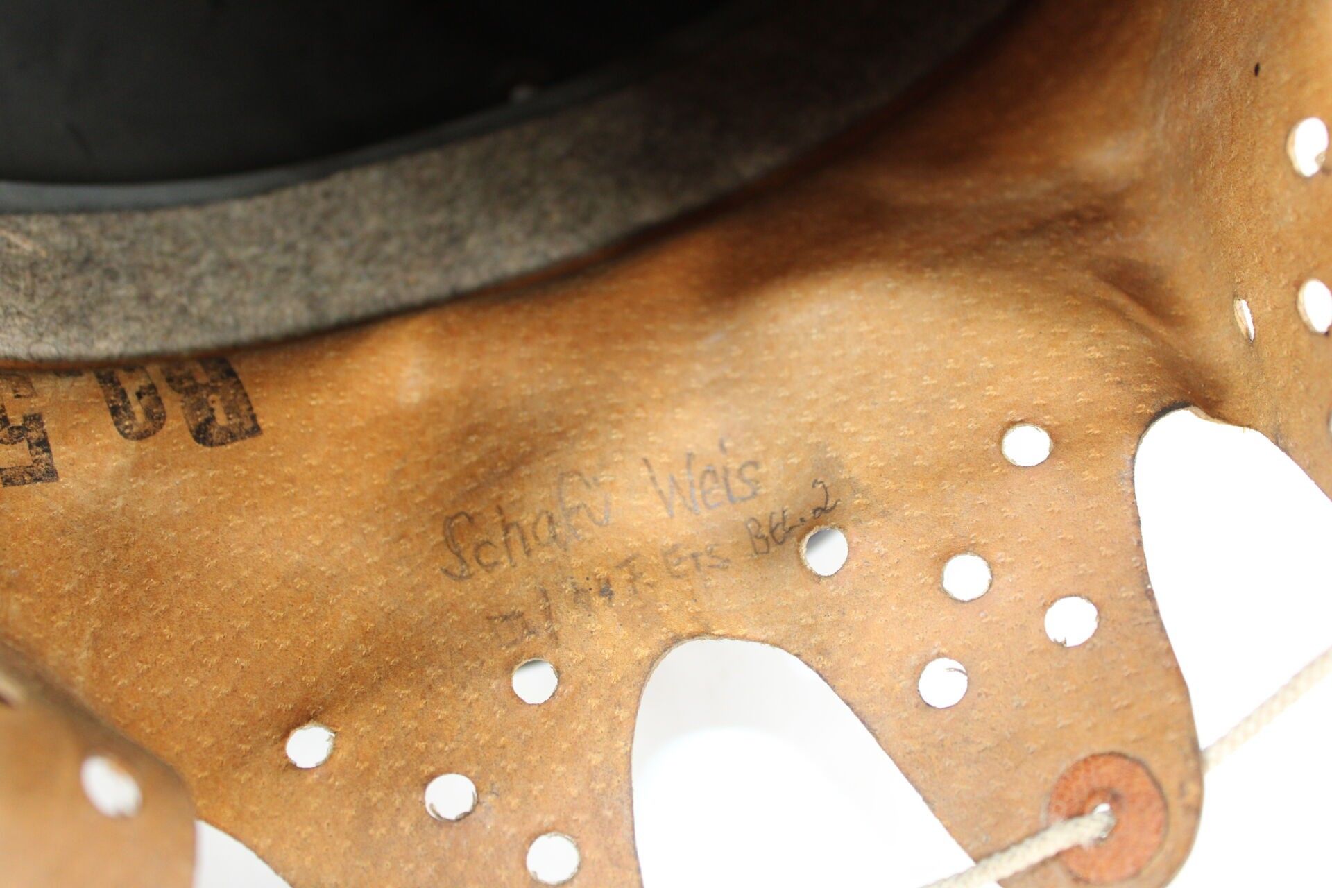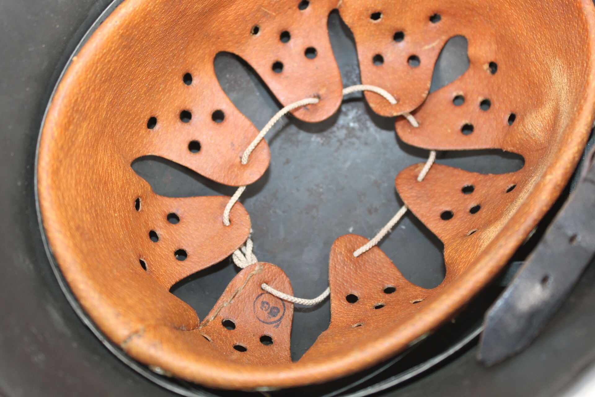 Leather chinstrap.