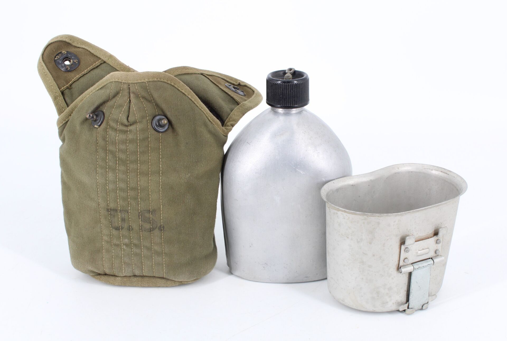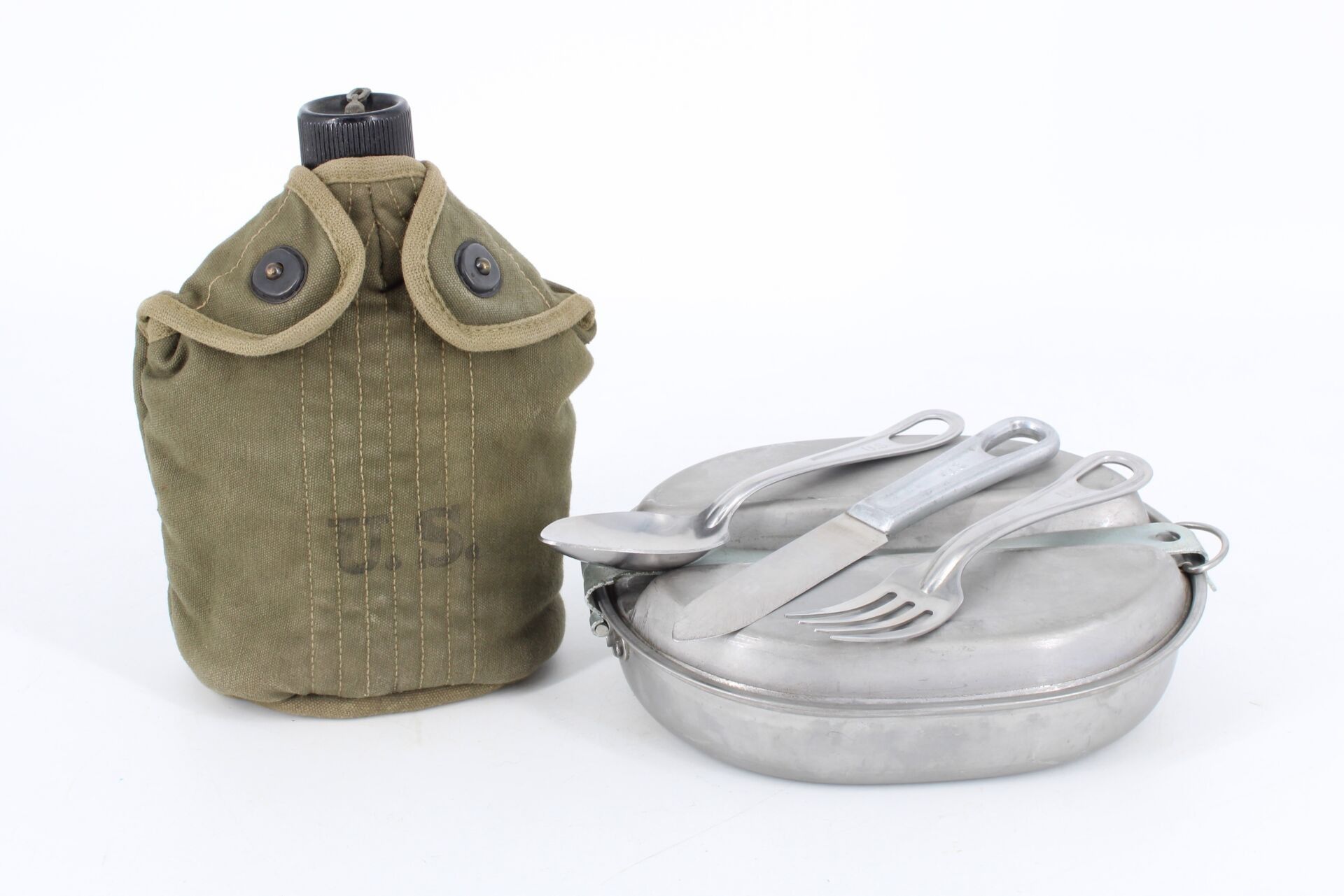 Canteen, bowl & cutlery - US Army Gourd, quarter & cover dat…