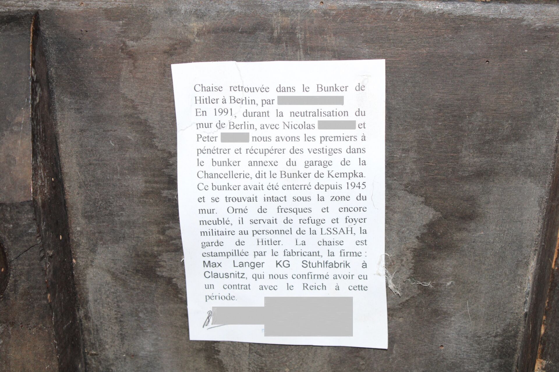 Stamped by the manufacturer : Max Langer / Stuhlfabrik - Clausnitz