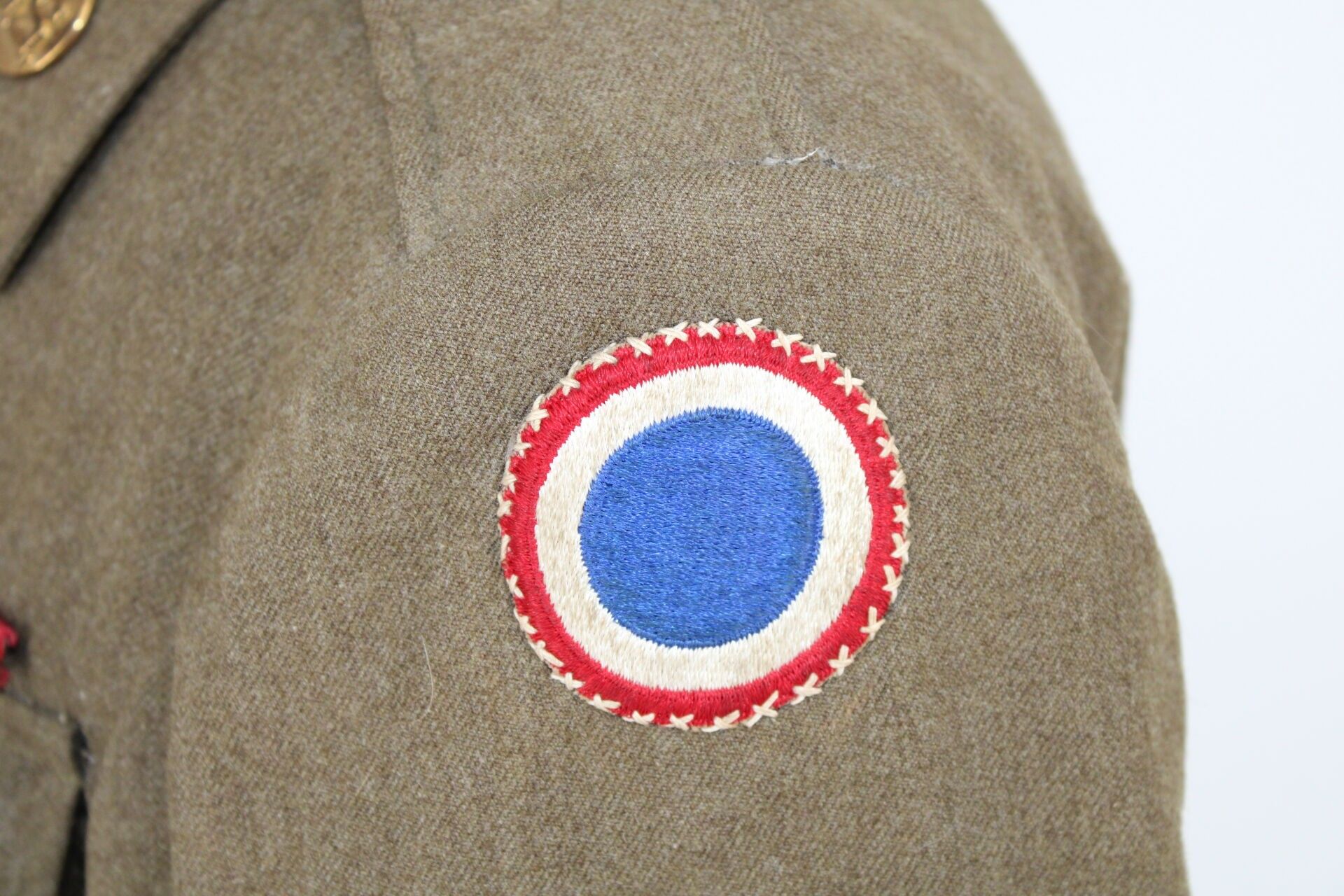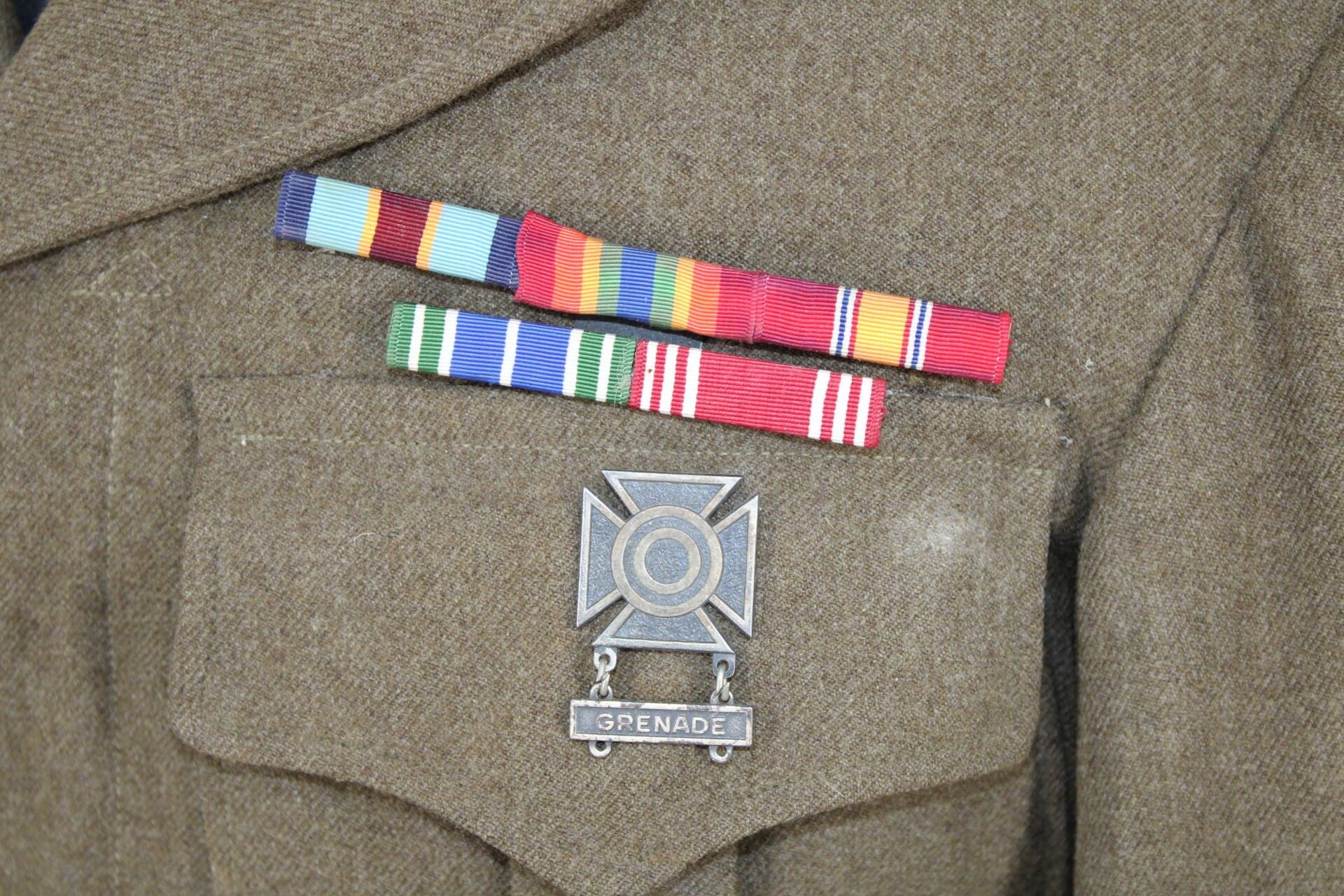 With "US" collar discs, medal ribbons, "Grenade" shooting award, 2 years overseas bar.