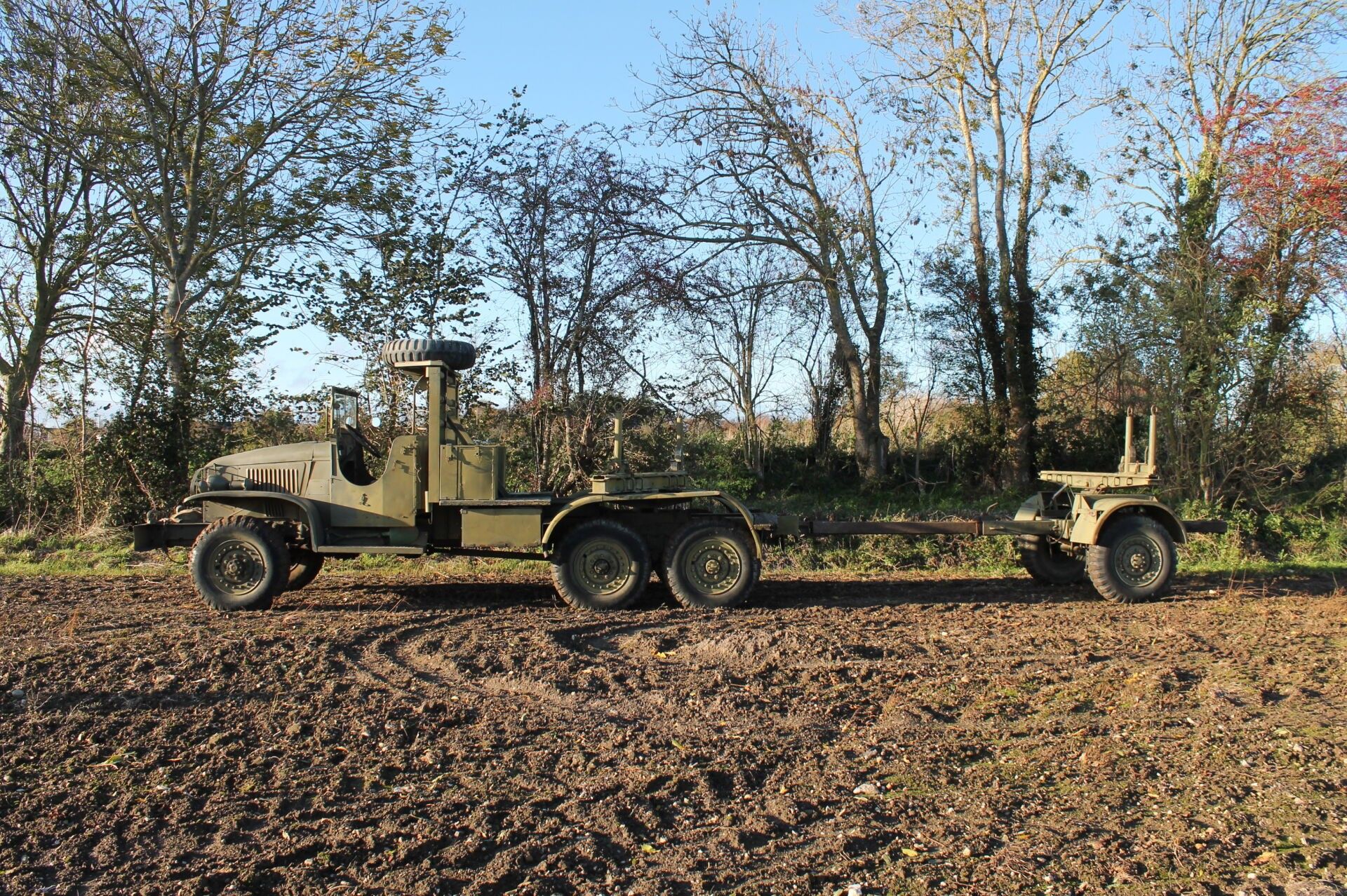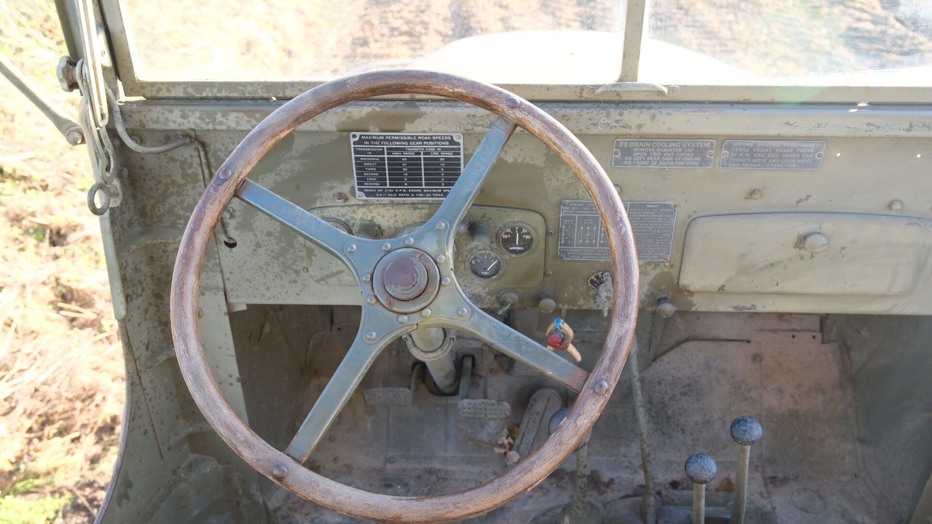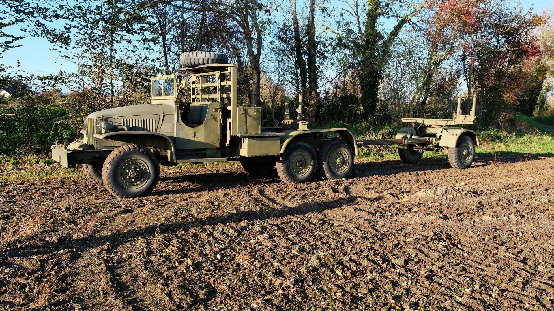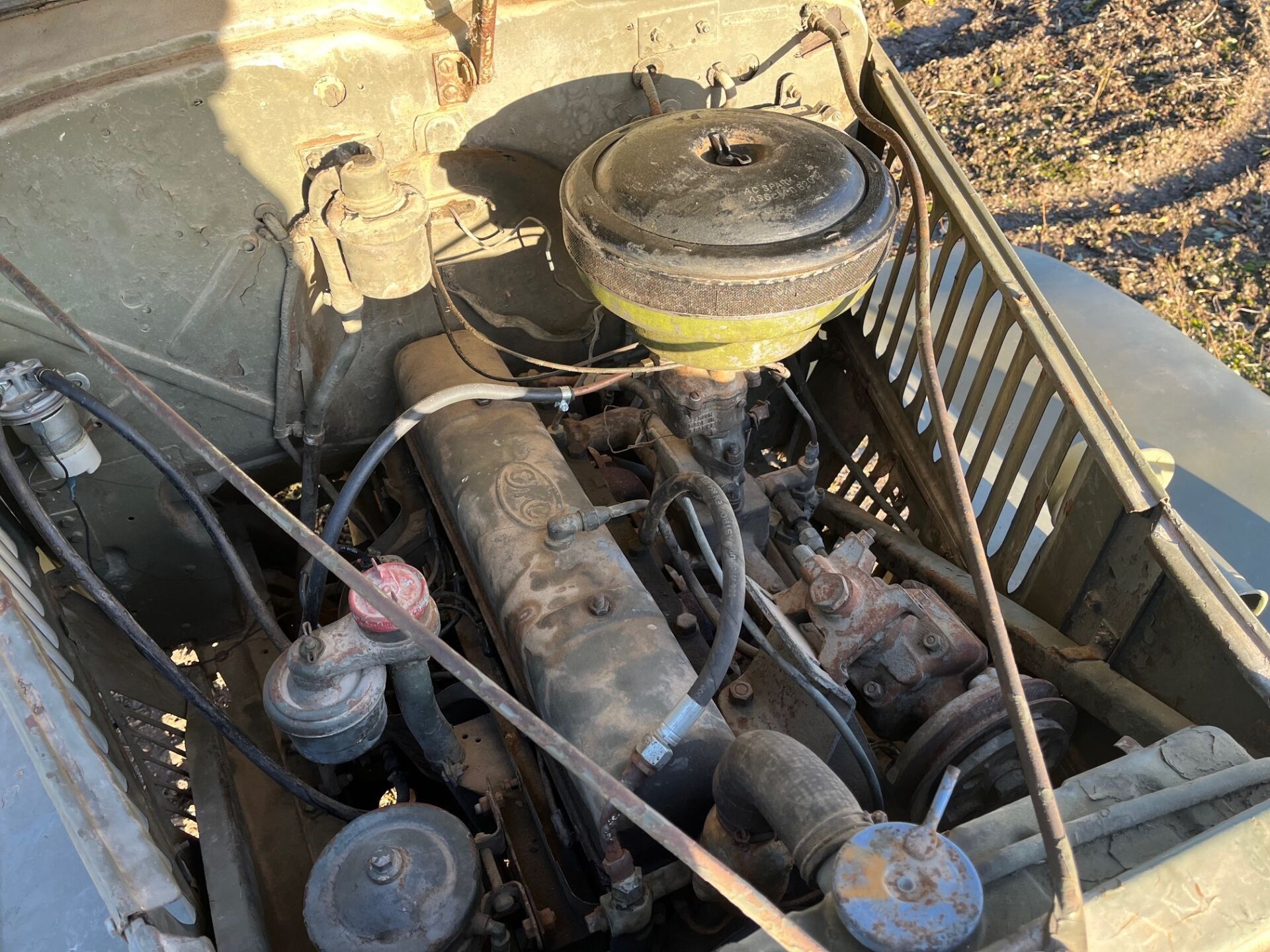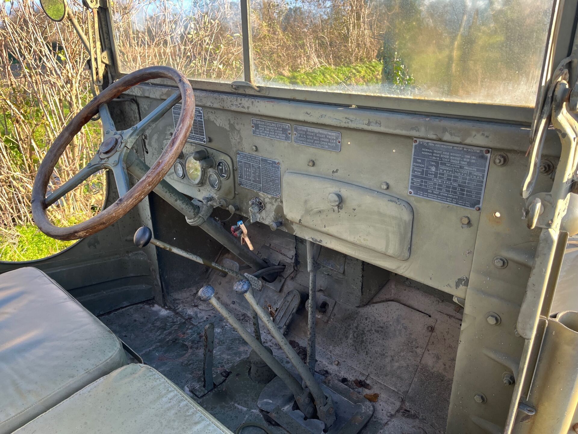 There is a superb wooden steering wheel. The air compressor mounted on its original engine is functional and the trailer hitch lock is operational. The boxes and trunks are original and in good condition.