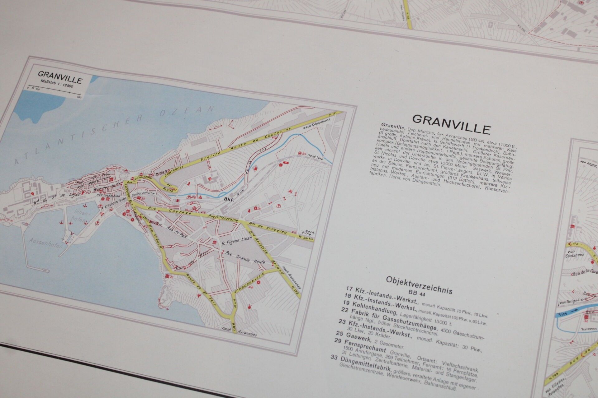 Uncommon recto/verso map including three detailed maps of the towns of Caen, St Lo and Granville.