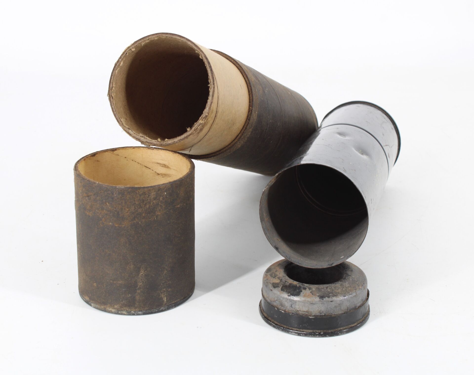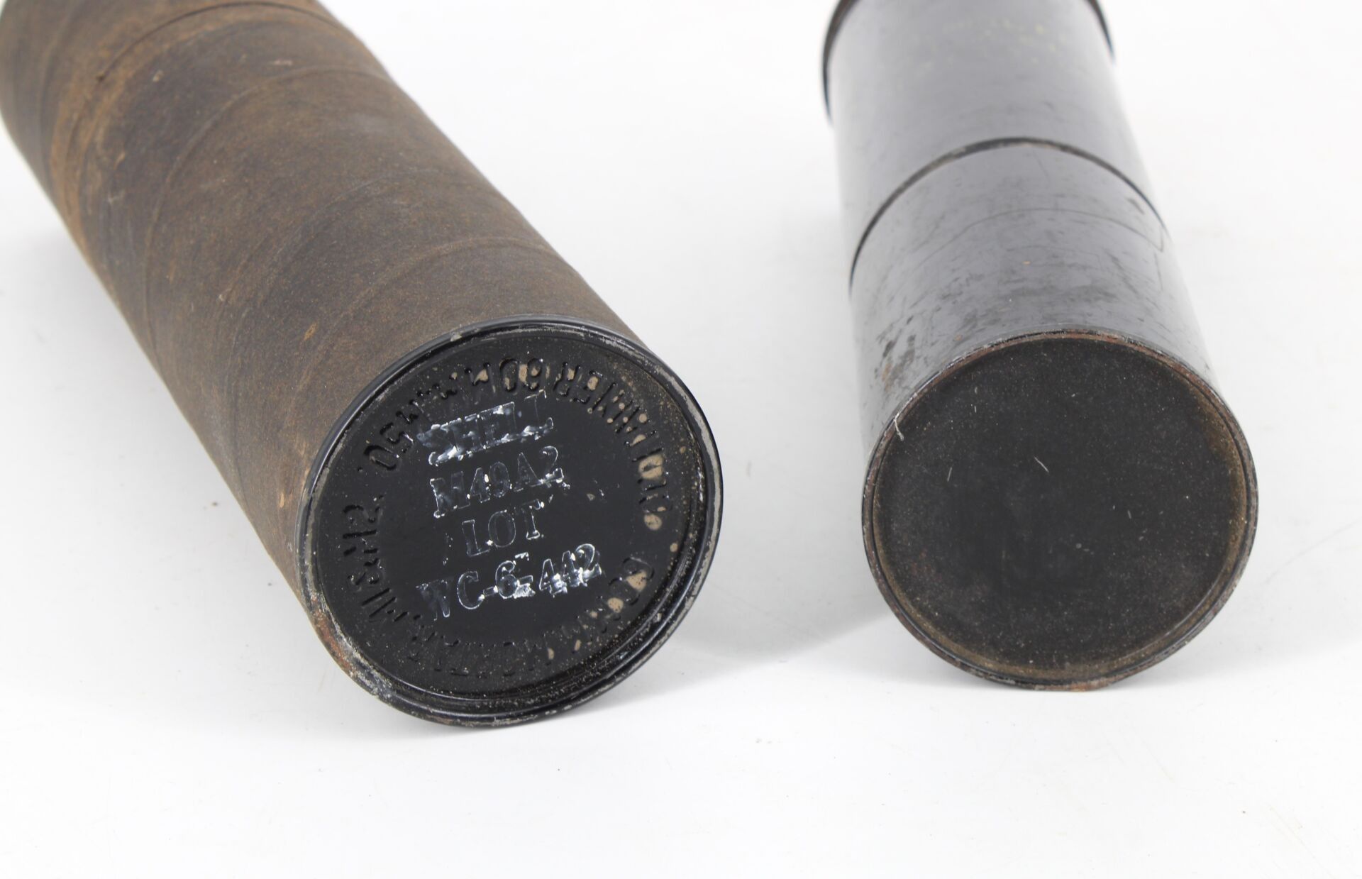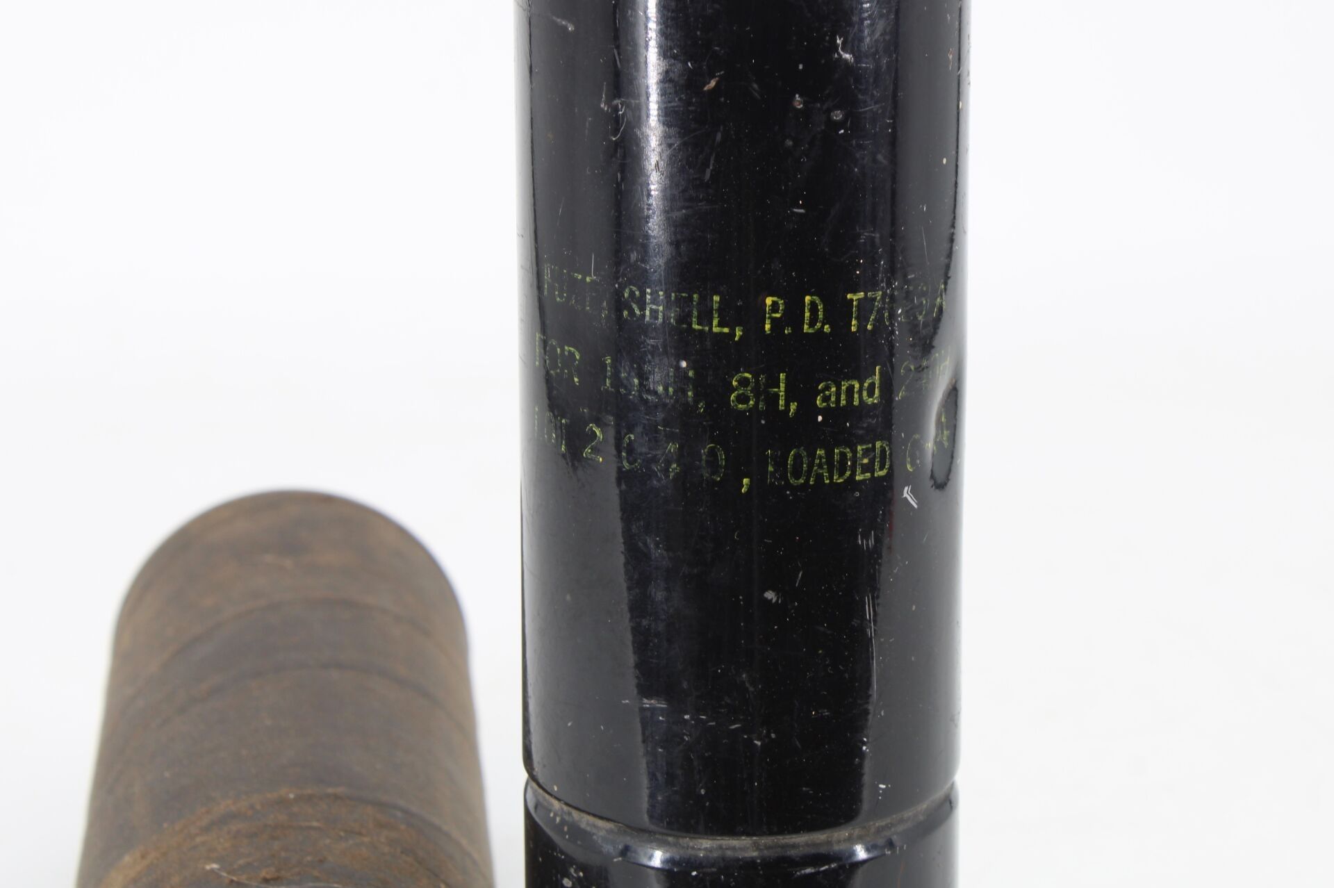A tarred cardboard container for transporting a 60mm mortar shell.