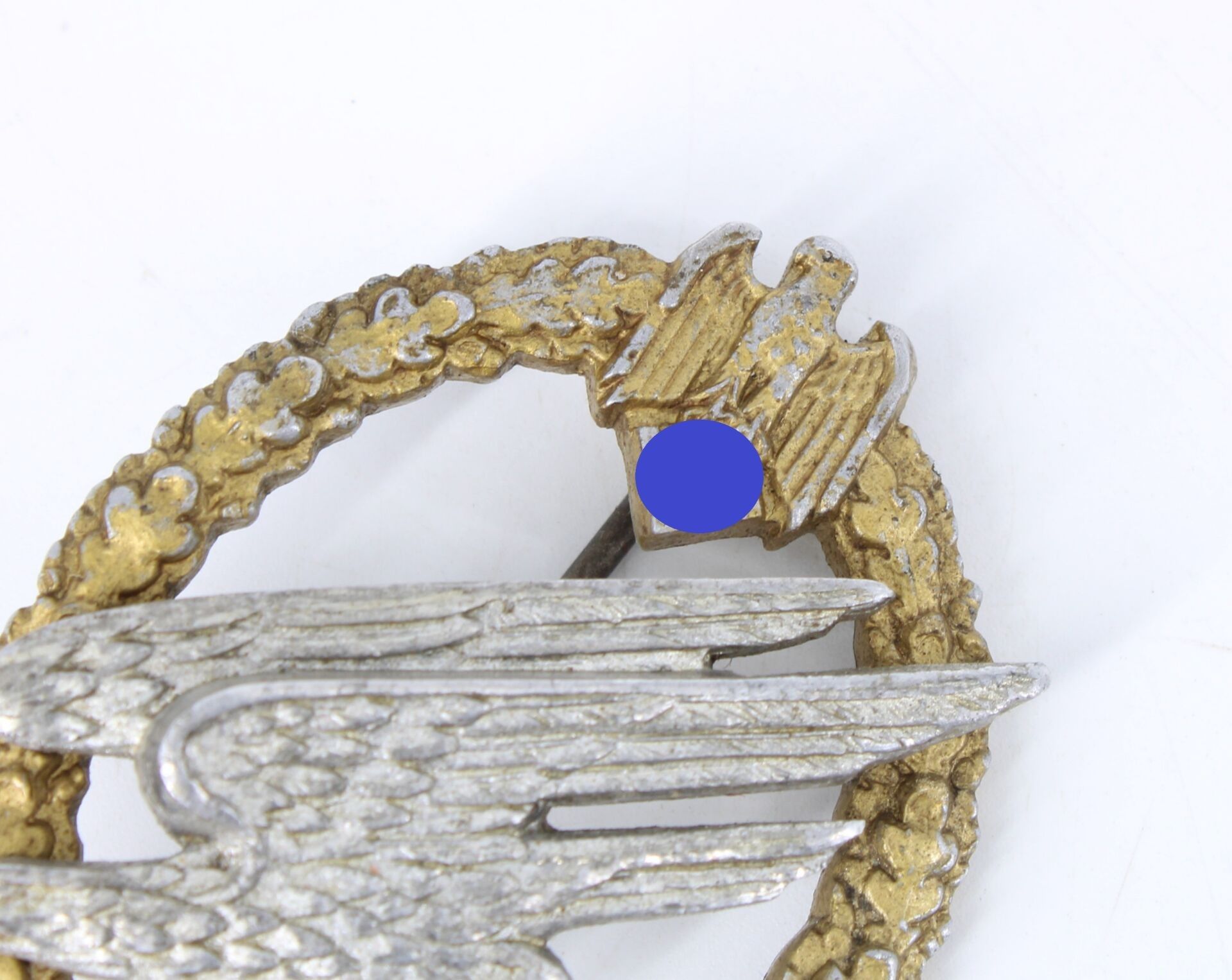 This badge was introduced on 1 September 1937 by the Commander-in-Chief of the Army, Colonel General Werner von Fritsch. This distinction was awarded to the army's parachute troops, who were later integrated into the air force (Luftwaffe).