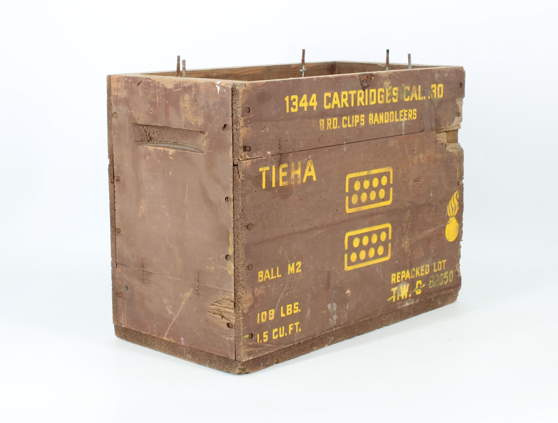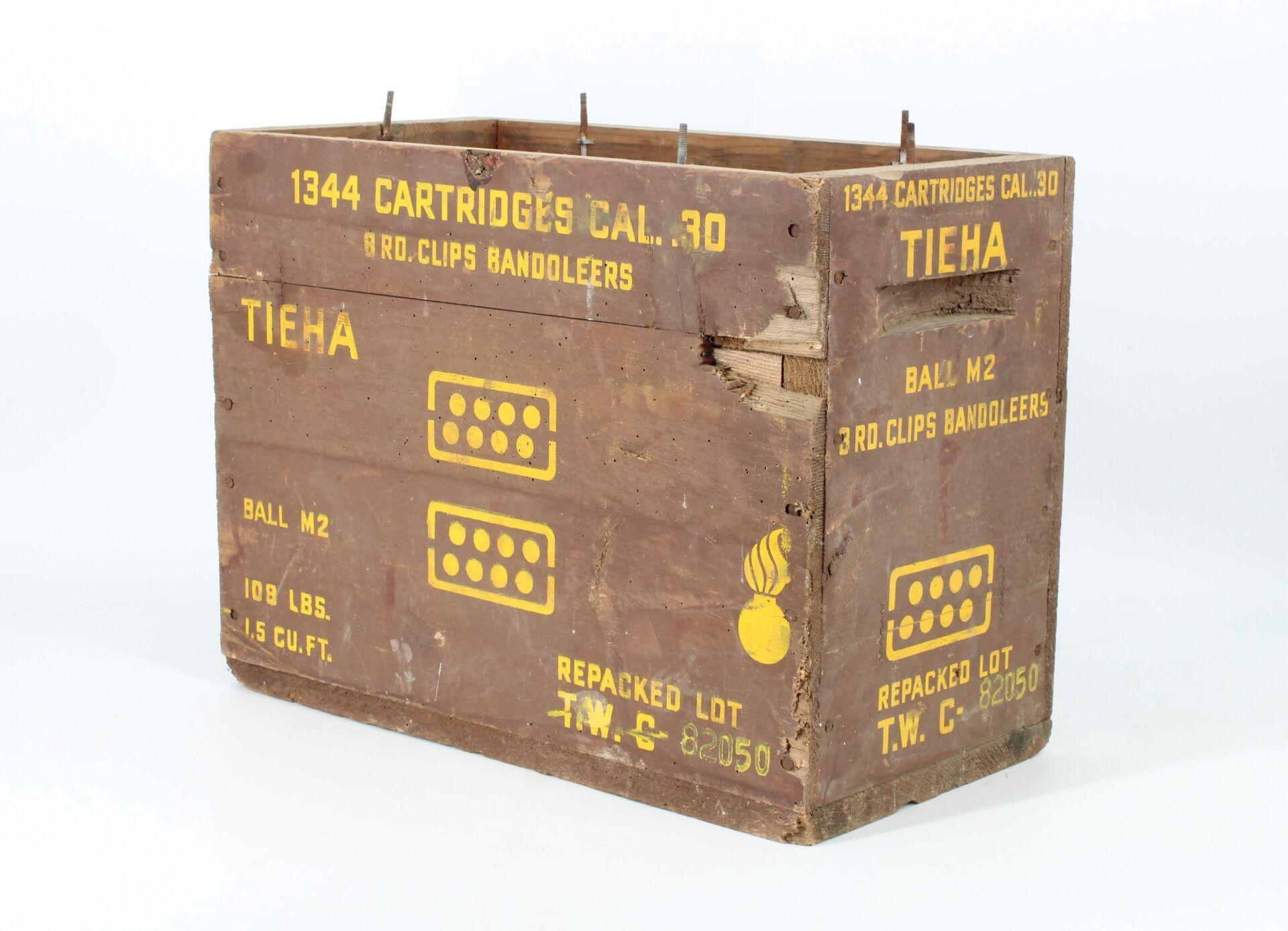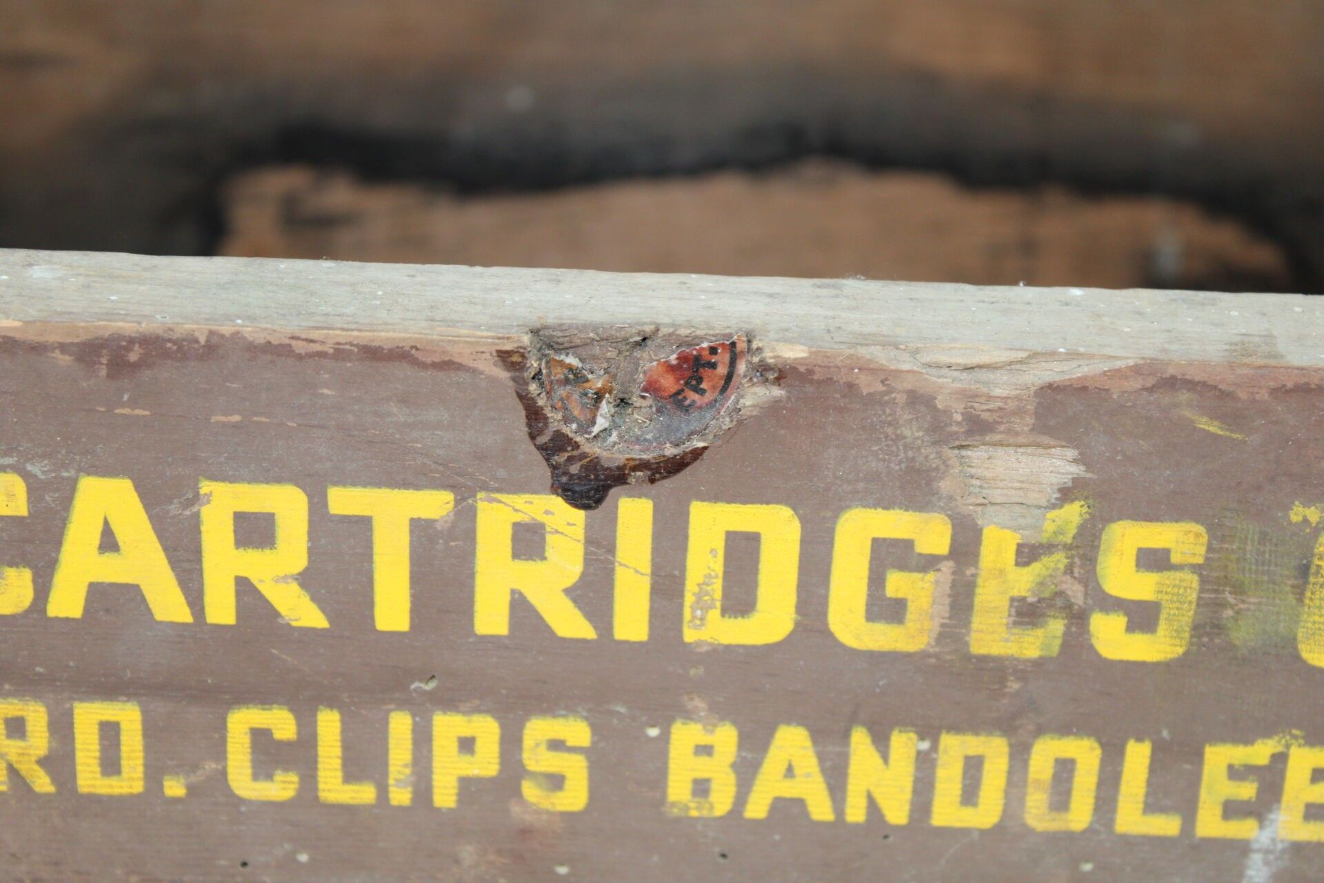 Wooden case 1st type for the transport of 1344 rounds of ammunition, stored in bandoleers.
