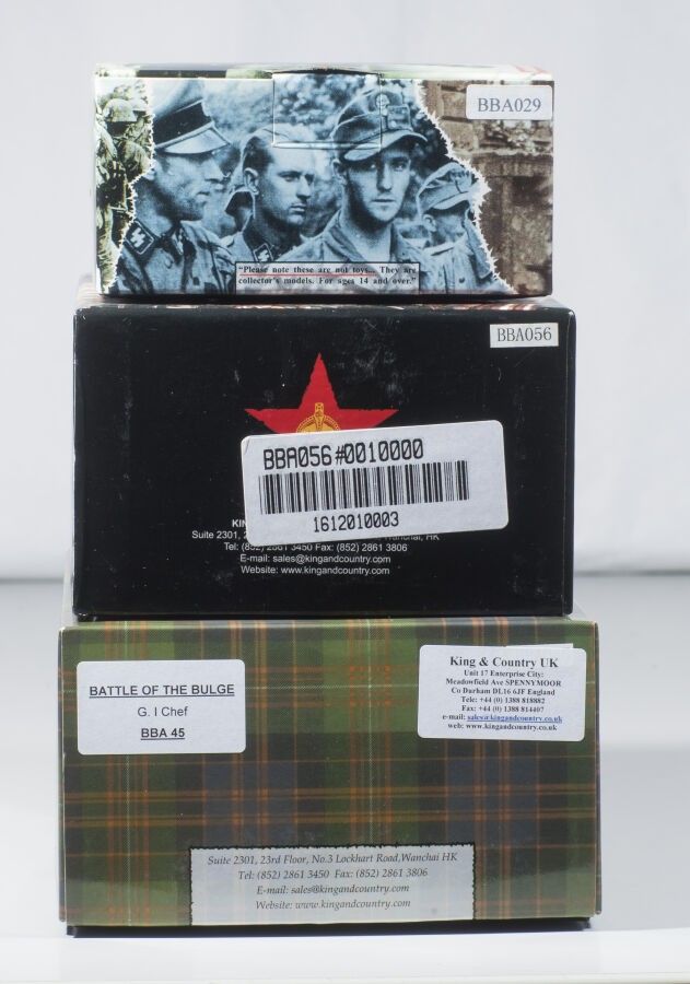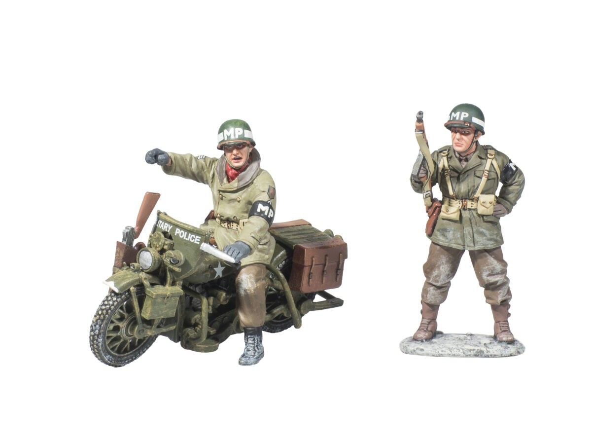 King & Country. Second World War. 1945. The Ardennes /1. 2 American Military Policemen with a Harley Davidson. References sold out. Ref. BBA024 and BBA035. 2 new boxes.