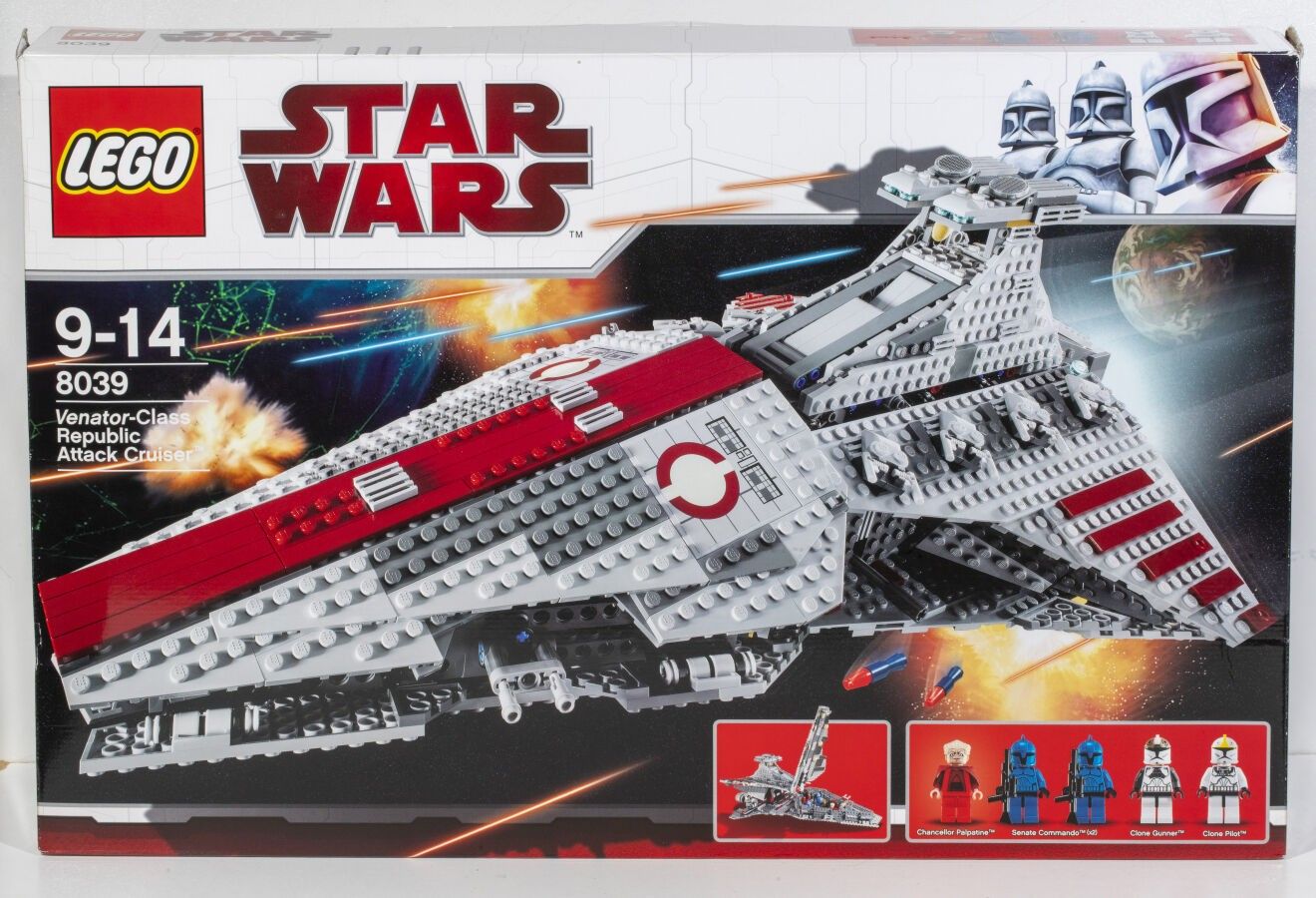 LEGO. Star Wars. Venator-class Republic Attack Cruiser. Ref. 8039 (1170 pieces). 2009. Set sold out. Complete with box and instructions. (Not collated).