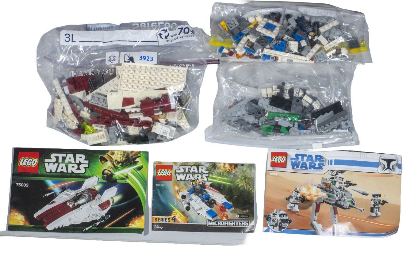 LEGO. Star Wars. A-Wing Starfighter, Clone Walker Battle Pack, U-Wing Microfighter. Ref. 75003 (177 pieces) 2013, 8014 (72 pieces) 2009, 75160 (109 pieces) 2017. Sets sold out. Complete with instructions. (Not collated).