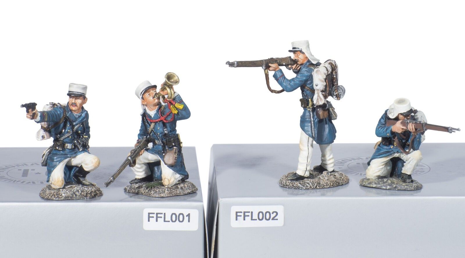 Thomas Gunn. Foreign Legion in the Sahara /1. Circa 1910. Officer, Bugler and 2 Soldiers. Sets sold out Ref. FFL001 and FFL002. (4 Fig.). 2 new boxes.
