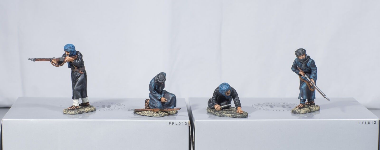 Thomas Gunn. Foreign Legion in the Sahara /5. Circa 1910. Arab warriors in combat. Sets sold out. Ref. FFL012 and FFL013. (4 Fig.). One chip otherwise T.B.E.