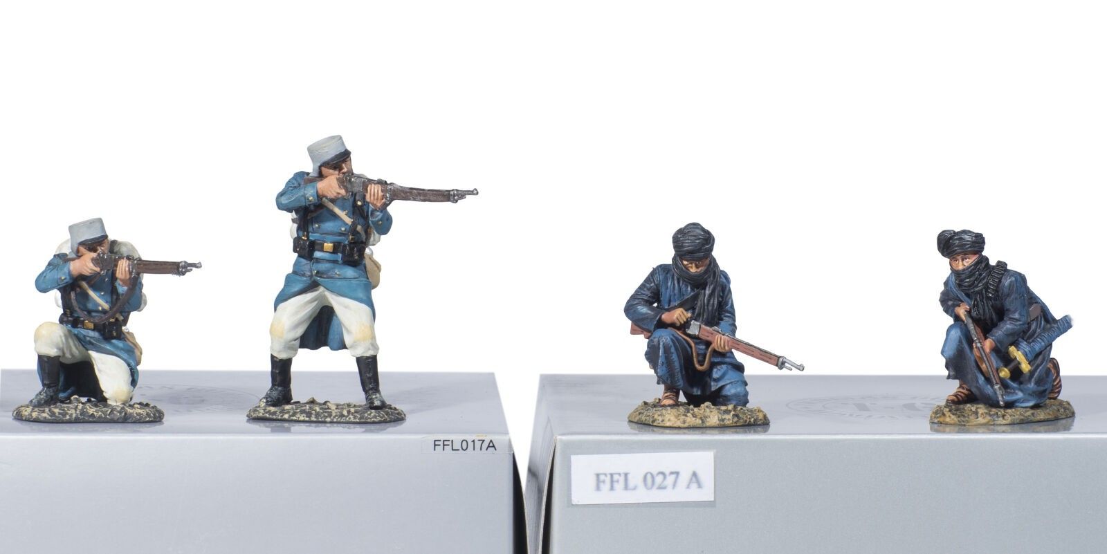 Thomas Gunn. Foreign Legion in the Sahara /8. Circa 1910. 2 Soldiers and 2 Arab Warriors. Sets sold out. Ref. FFL017A and FFL027A (4 Fig.). 2 new boxes.