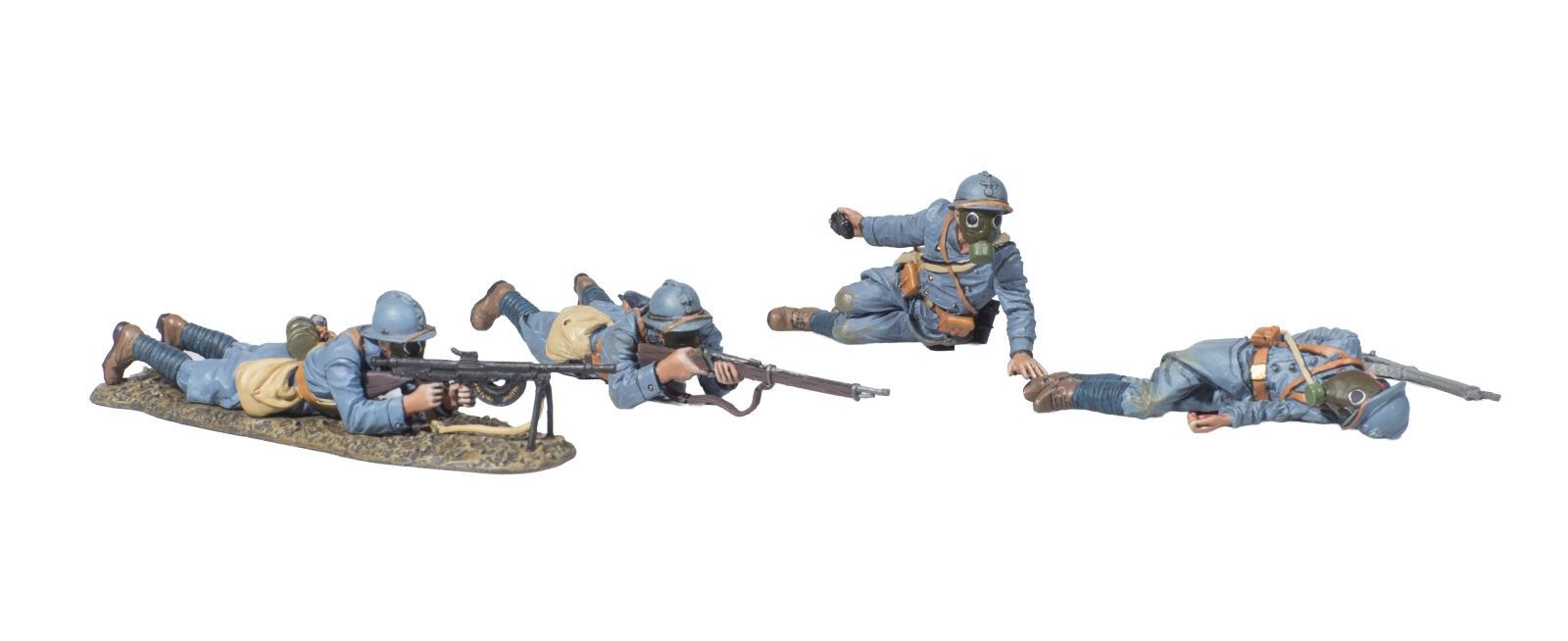 Thomas Gunn. First World War /6. 3 French soldiers lying or dead. Sets sold out. Attached a recumbent soldier without box. Ref.CLUB013, GW039A and GW042B. (4 Fig.). 3 new boxes.
