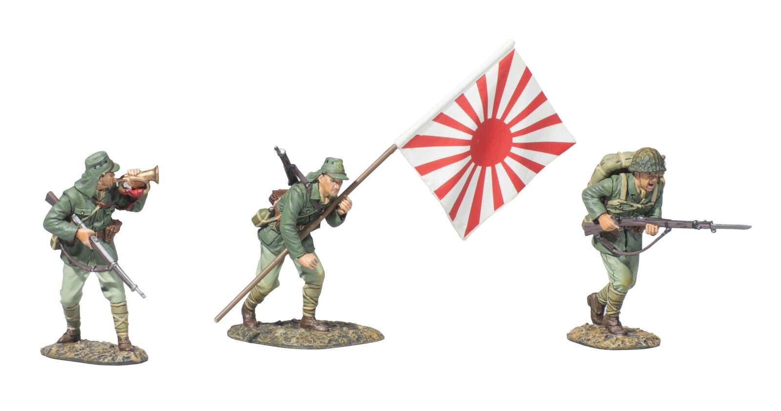 Thomas Gunn. Second World War Pacific /6. Japanese Soldiers Charging with Flag and Bugle. Sets sold out. Ref RS020C, RS021A and RS022A. (3 Fig.). 3 new boxes.