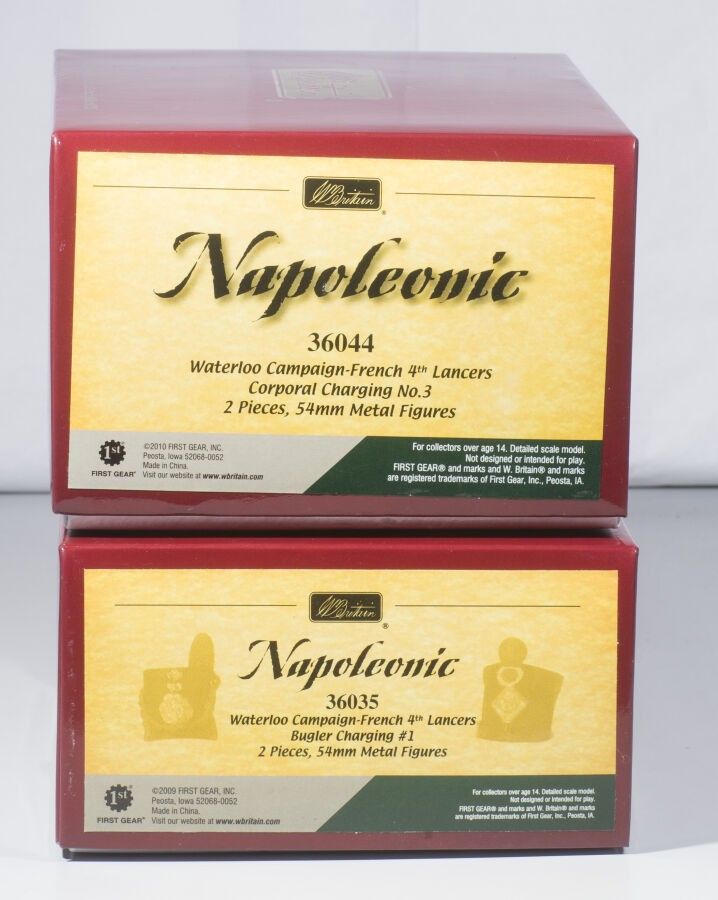 William Britain. 1st Empire. French Chevau-légers /1. Corporal and Bugler at the charge. Set sold out Ref. 36035 and 36044. Sets sold out in limited editions of 550 and 700 numbered copies. (2 Fig.). 2 new boxes.
