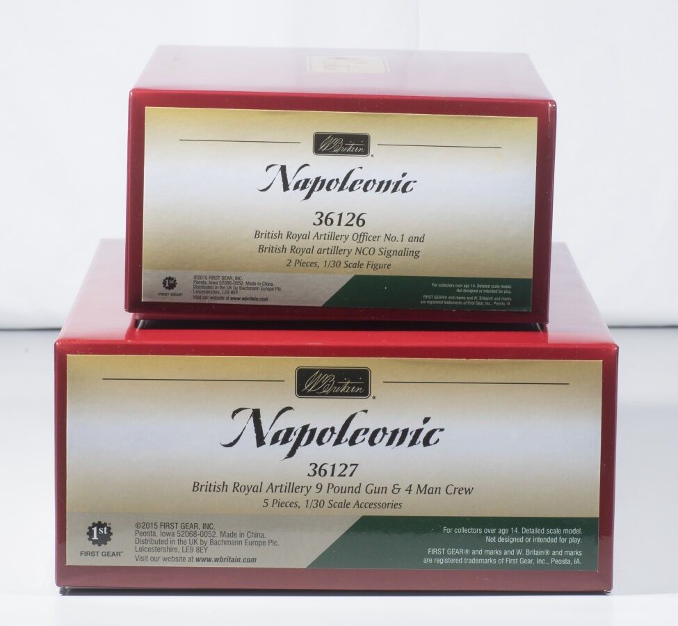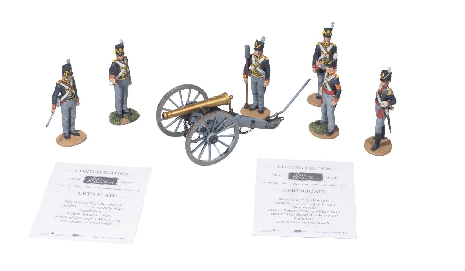 William Britain. 1st Empire. British Royal Artillery. Cannon with officers and gunners. Sets sold out in limited editions of 400 with numbered certificates. Ref. 36126 and 36127 (6 Fig. + gun). 2 new boxes.