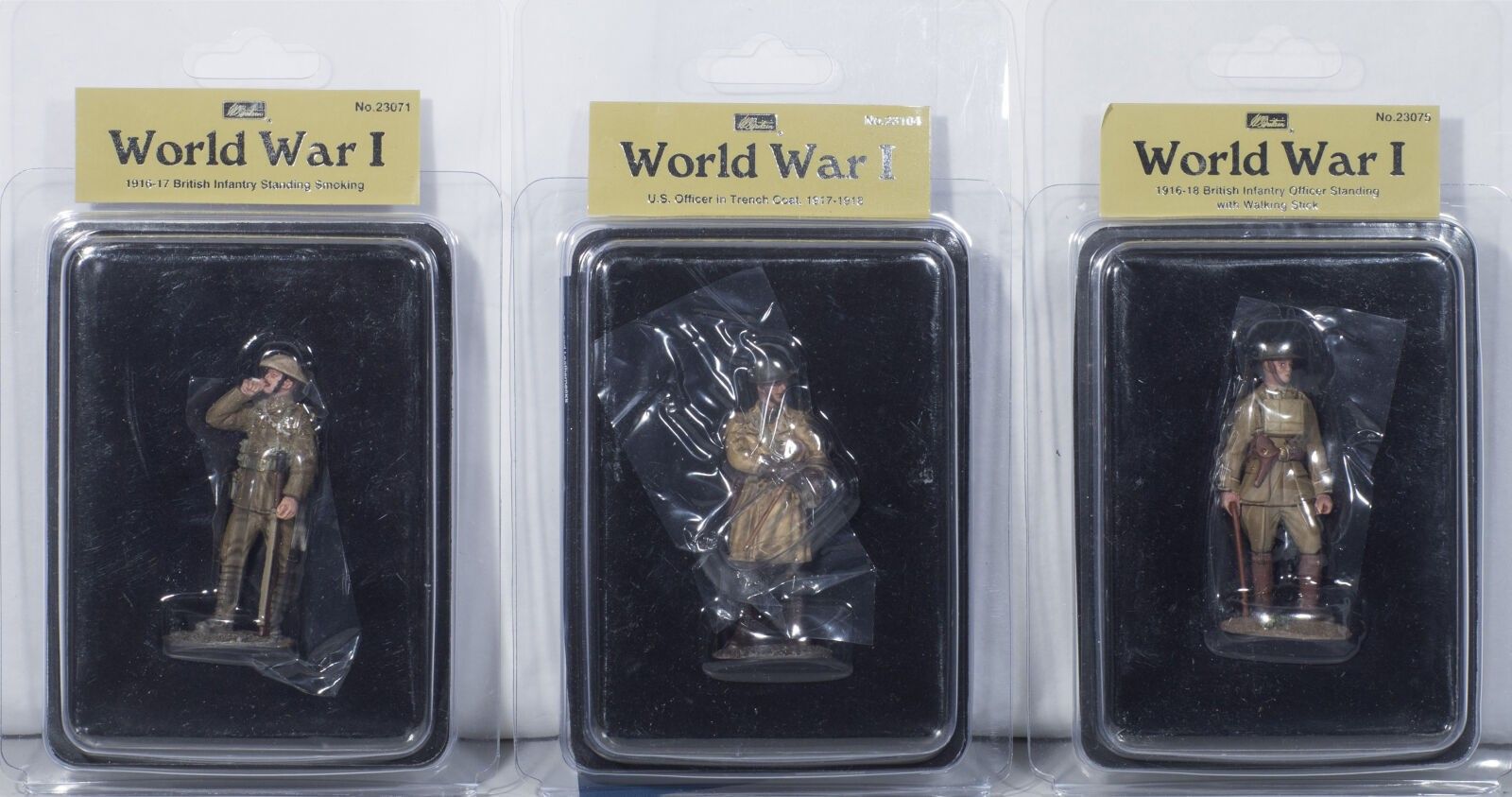 William Britain. First World War. British Army /1. Officers and Soldiers on standby. Sets sold out. Ref. 23071, 23075 and 23104. (3 Fig.). In boxes. T.B.E.