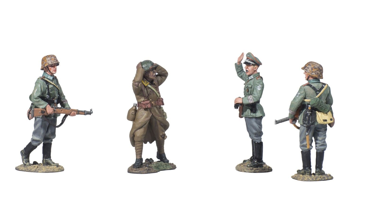 King & Country. Second World War. 1940. German soldiers with prisoner. References withdrawn. Ref FOB036 and FOB044. 2 new boxes.