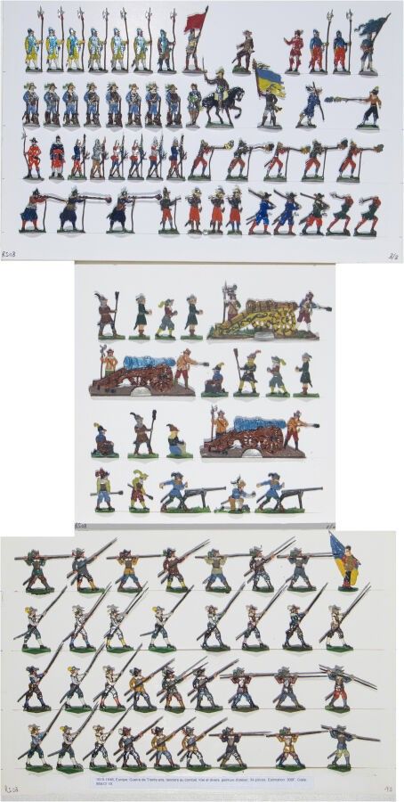 Thirty Years War 1618-1648 /1. Pikemen, Lancers, Harquebusiers and Gunners with Bombards. Amateur painting. 99 Pieces in 3 plates. T.B.E.