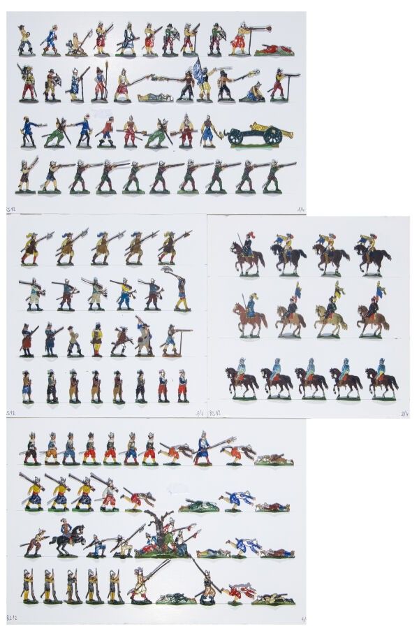 English Renaissance and Revolution. Cavalry, Halberdiers, Pikemen, Harquebusiers and Gunners. Amateur painting. 117 pieces in 4 plates. B.E.