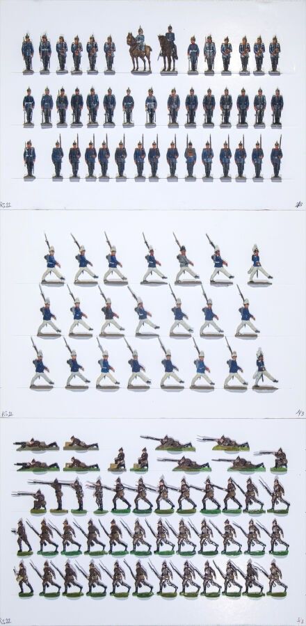 19th and 20th centuries. Austro-Hungarian, Prussian and other armies. Infantry on parade and in combat. Amateur painting. 113 Pieces in 3 plates. T.B.E.