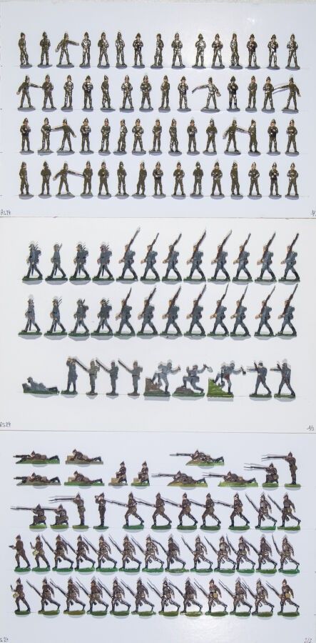 1914-1940. German, Italian and other armies /2. Infantry on parade and in combat. Amateur painting. 140 Fig. in 3 plates. T.B.E.