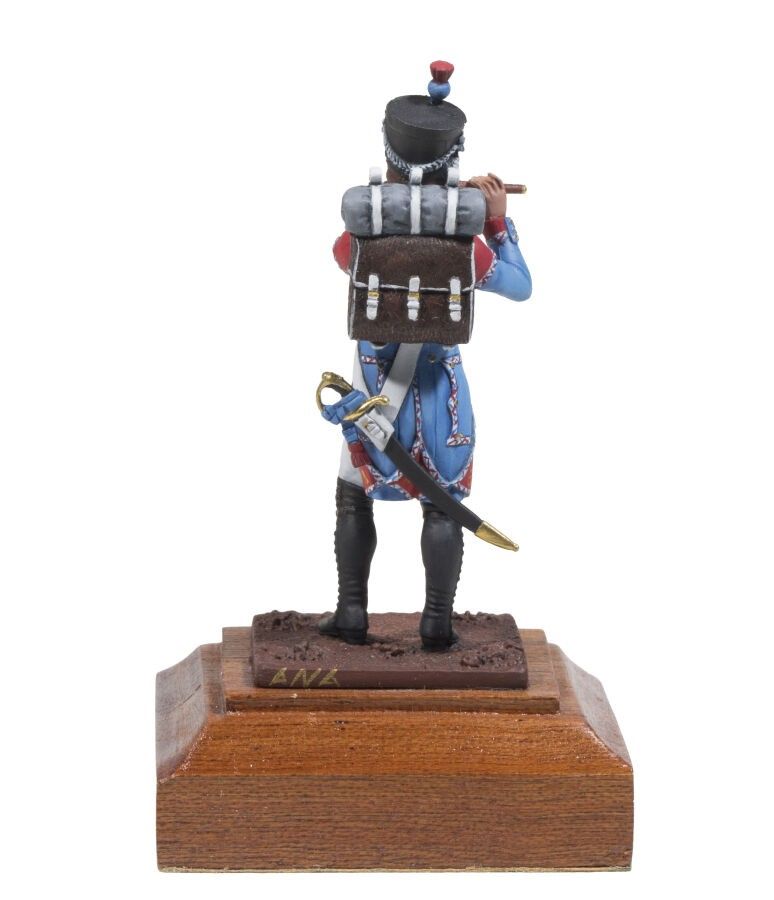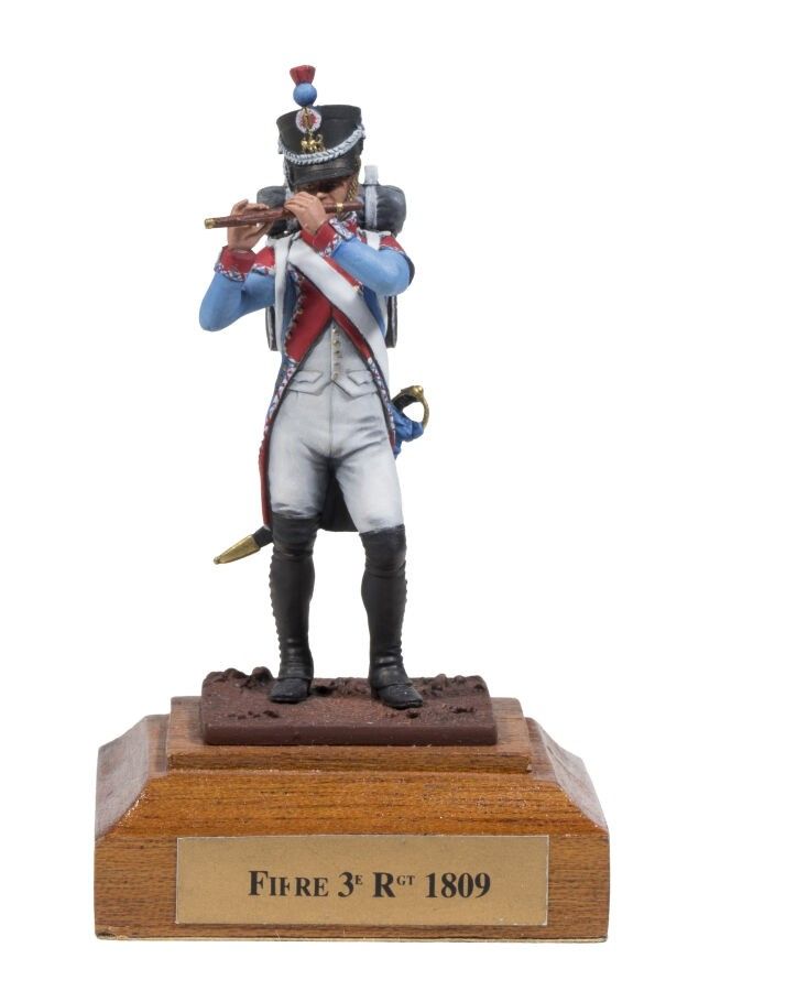 Fine painting by Anne-Paule André. 1st Empire. Fifre of the 3rd Regiment of the Line 1809. On a Métal Modèles base. Michel Saez sculpture. Beautifully signed, on a wooden base (1 Fig.). T.B.E.