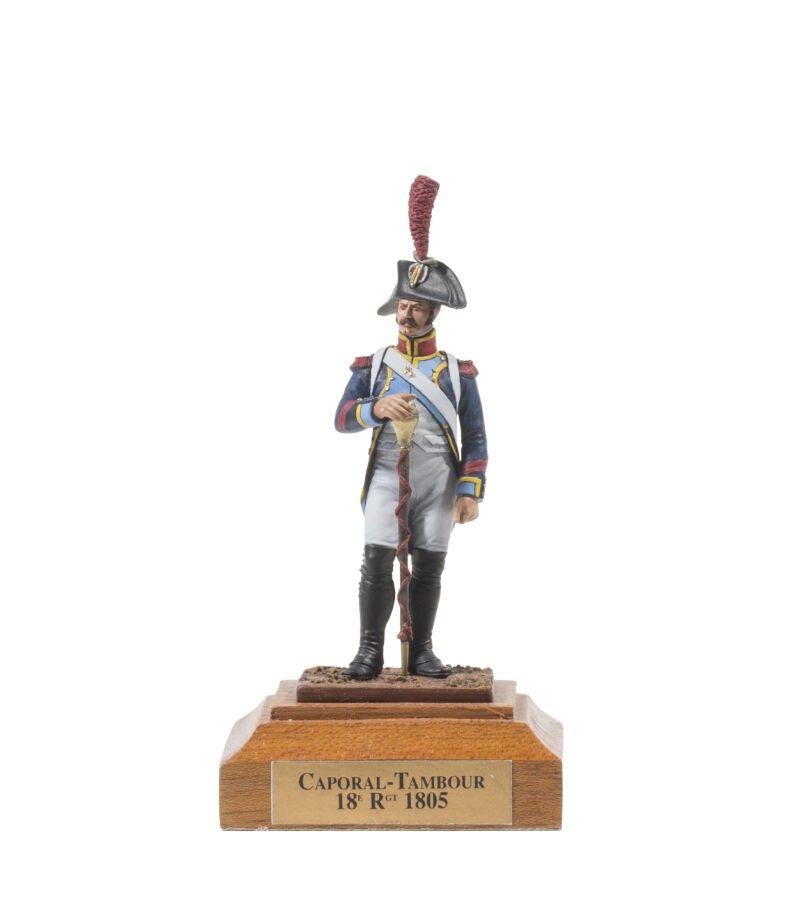 Fine painting by Anne-Paule André. 1st Empire. Corporal Drummer of the 18th Regiment 1805. On a Métal Modèles base. Bruno Leibovitz sculpture. Beautifully signed, on a wooden base (1 Fig.). T.B.E.