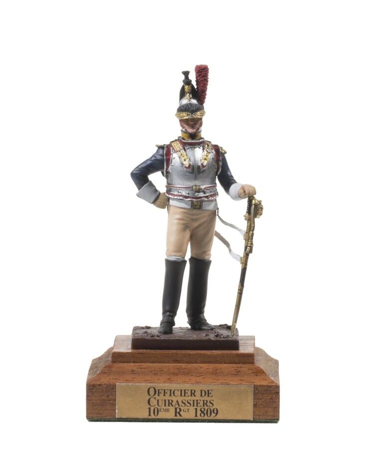 Fine painting by Anne-Paule André. 1st Empire. Cuirassiers Officer of the 10th Regiment 1809. On a Métal Modèles base. Bruno Leibovitz sculpture. Beautifully signed, on a wooden base (1 Fig.). T.B.E.