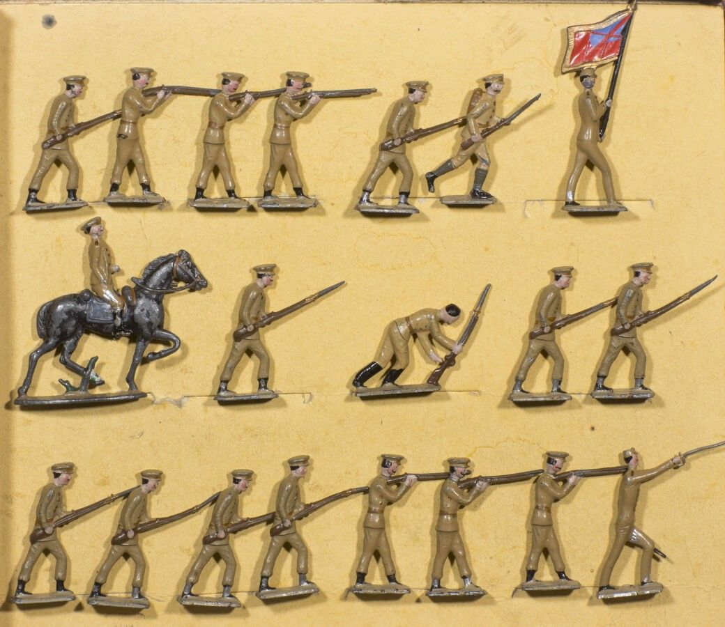 C.B.G. Mignot. 1914-18. English in the assault /1. 1st Size. With Officer on horseback and Flag. Old manufacture before 1940. In original used box. (20 Fig.). B.E.