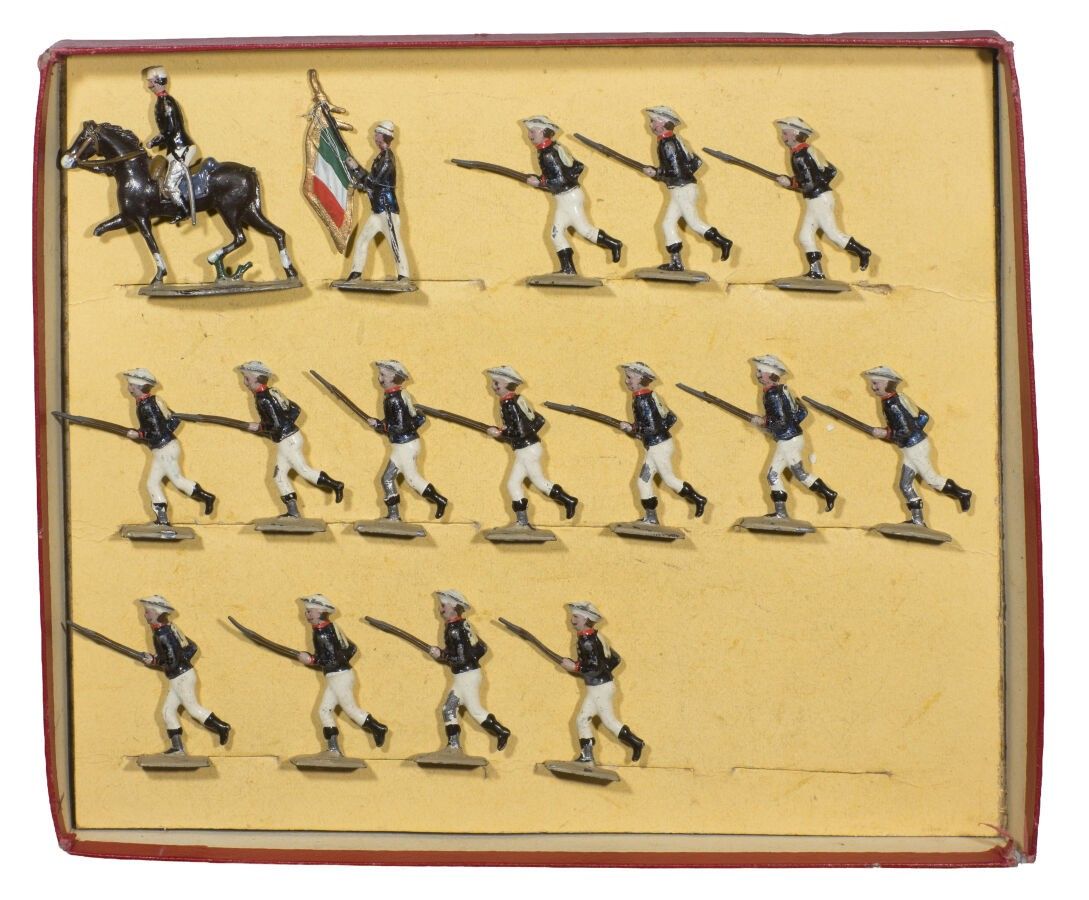 C.B.G. Mignot. 1914-18. Italian Bersagliers. 1st Grandeur. In the assault. Old manufacture before 1940. In original used box. (16 Fig.). Accidents. GOOD CONDITION.