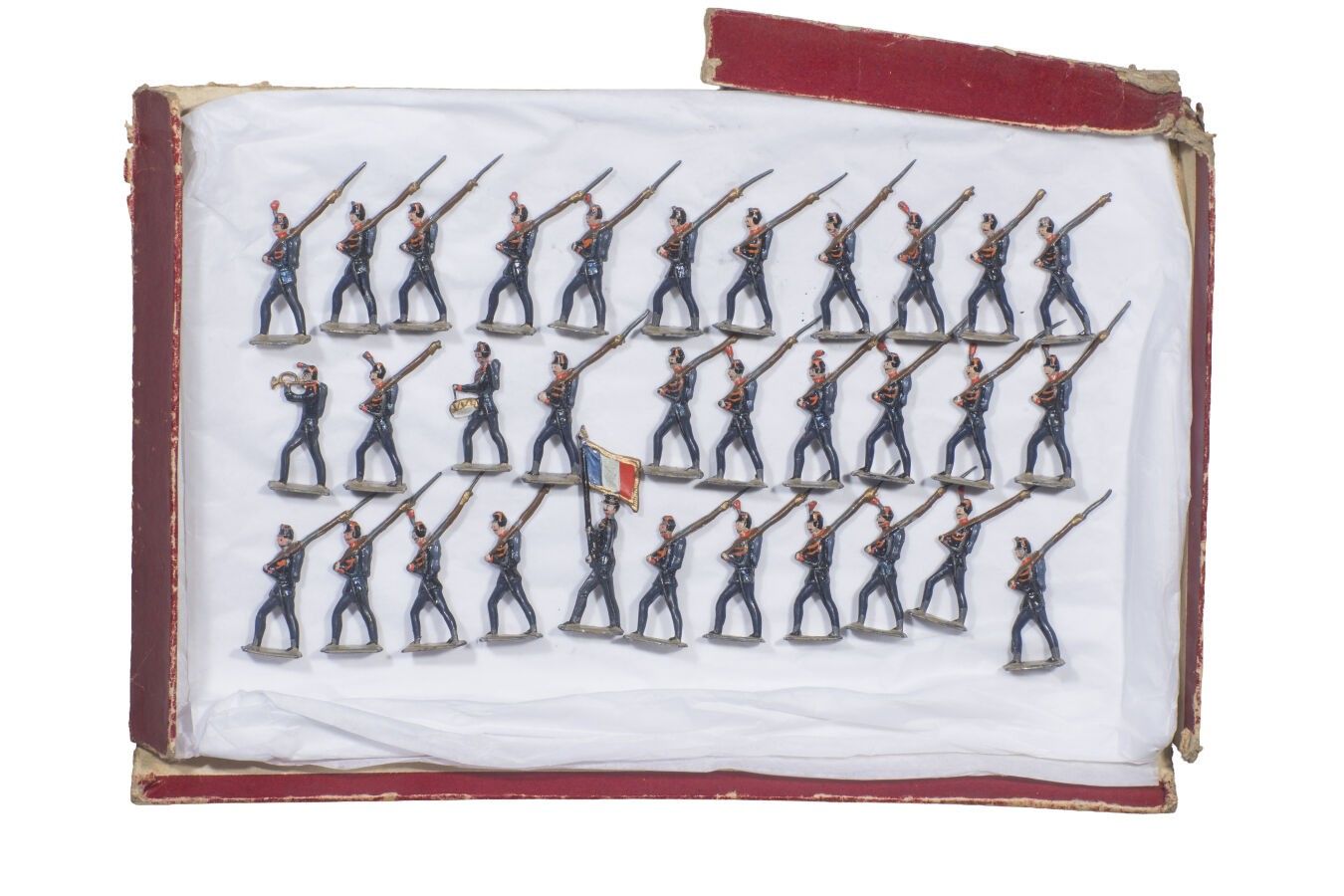 C.B.G. Mignot. Circa 1880. Guards of Paris. 1st Grandeur. With Flag, Drum and Bugle. Old manufacture before 1920. In original used box. (32 Fig.). Used condition.