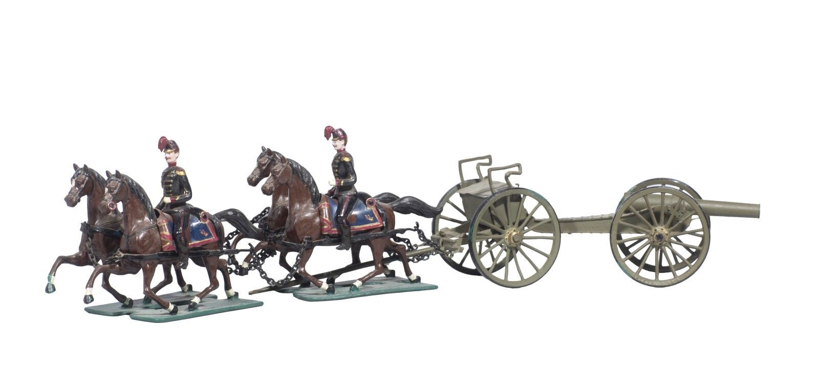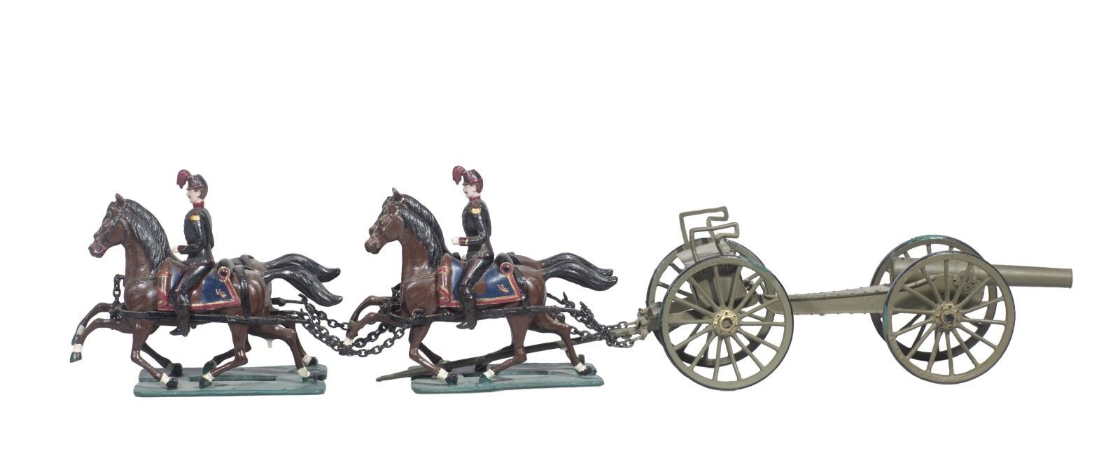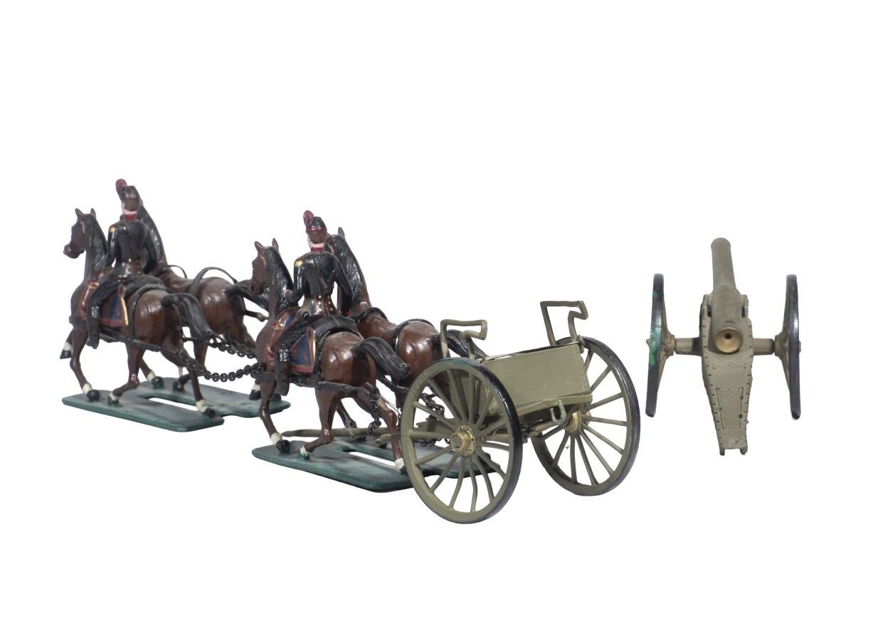 C.B.G. Mignot. Third Republic. 4th Greatness. Train with cannon. Rare 4 horse carriage mounted by 2 artillerymen. Some attachments to be revised. Good condition.