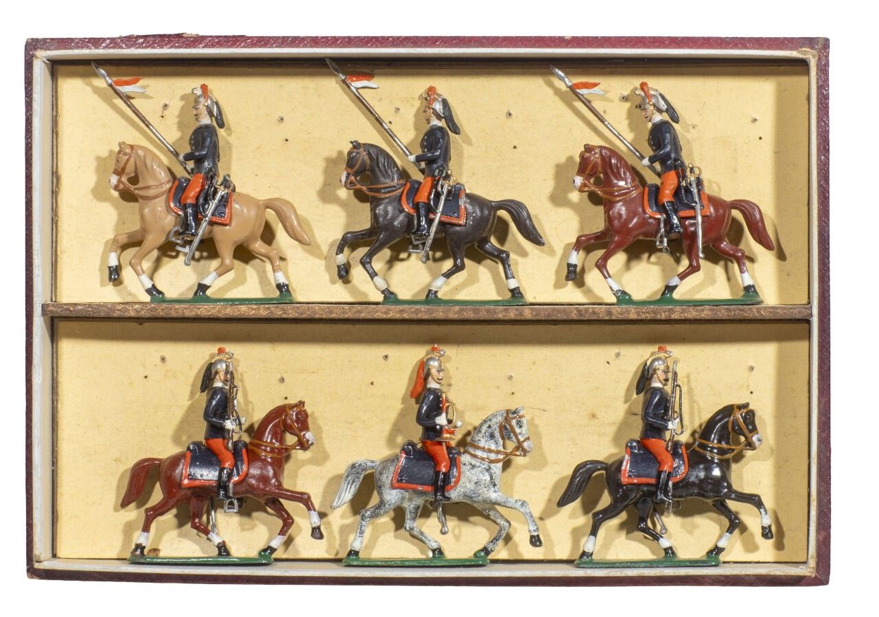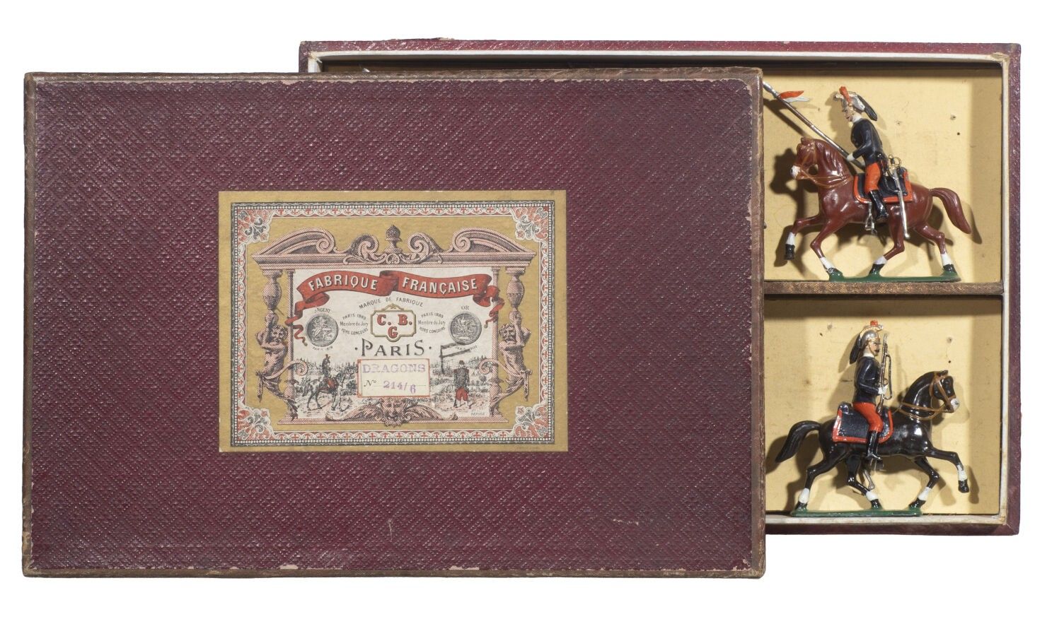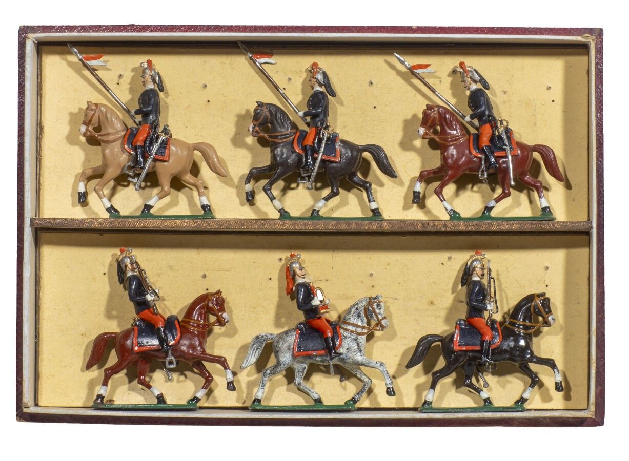 C.B.G. Mignot. Third Republic. Dragoons on horseback. Vintage Gerbeau edition circa 1905. With green terraces. In their box. In good condition (6 pieces). T.B.E.