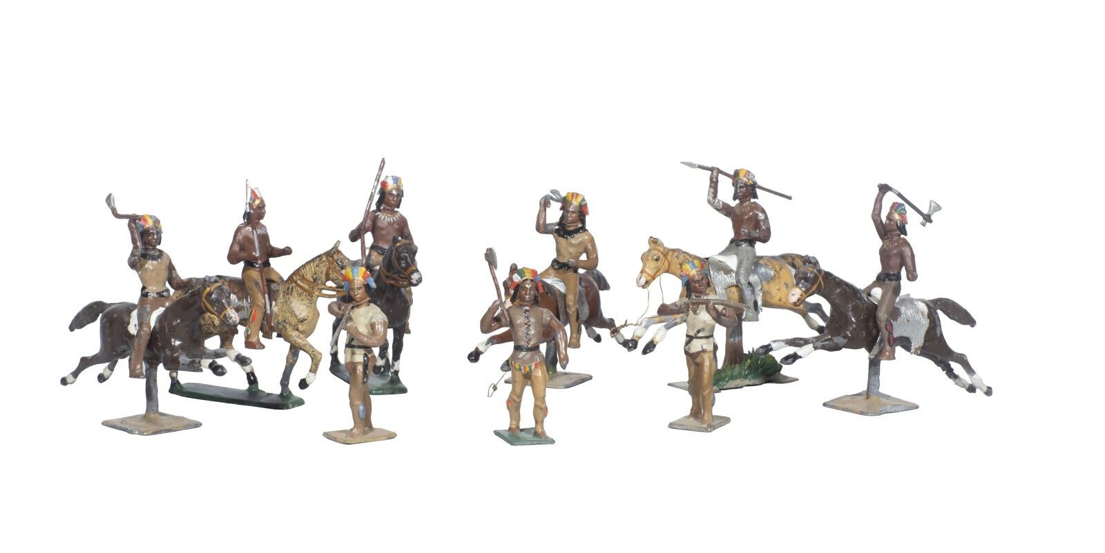C.B.G. Mignot. Far West. Indians. 6 Indian warriors on horseback and 3 on foot. Edition and old pieces from 1890 to 1910 (9 Fig.). One lack and chipping otherwise B.E.