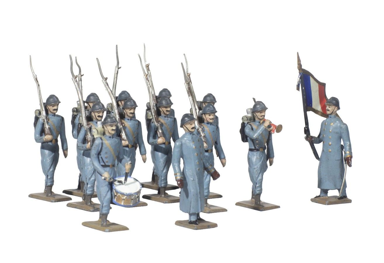 C.B.G. Mignot. 1914-18. Infantry on the march. Officer, Flag (repaired), Drummer, Bugler and 8 marching Soldiers. Old edition. (13 Fig.). B.E.