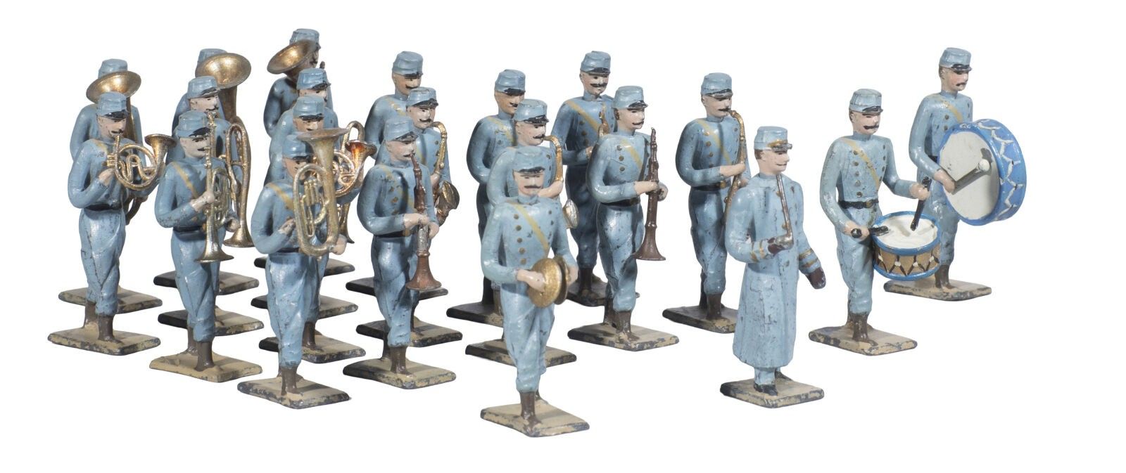 C.B.G. Mignot. 1914-18. Line infantry band with cap and horizon blue uniform at the end of 1914. Bandmaster, bass drum, drummer and 18 musicians with various instruments. Old edition. (21 Fig.). B.E.