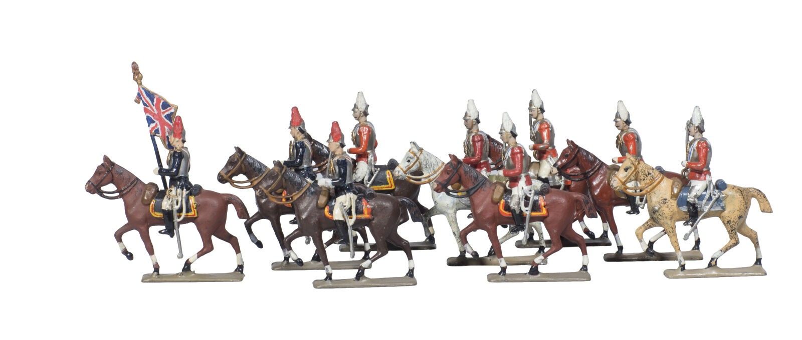 C.B.G. Mignot. 1900-50. English Cavalry. Life Guards and Blues & Royals with standard. Various old and more recent editions. (9 Fig.). Used condition to B.E.