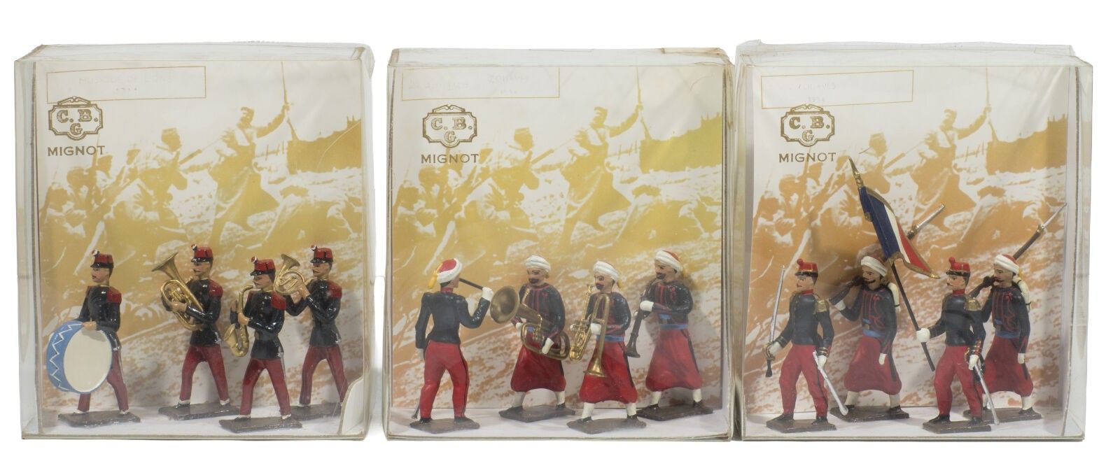 C.B.G. Mignot. 1870-1914. Infantry and Zouaves. 11 Infantrymen and Musicians and a Flag (12 Fig.). Brand new in 3 boxes.