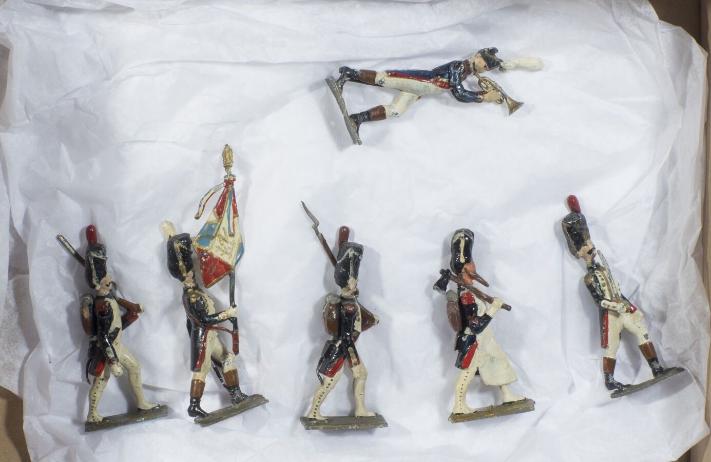 Lucotte. 1st Empire. Grenadiers of the Guard. Old editions. Officer, Standard Bearer, Sapper, Musicians and 2 Grenadiers. (6 Fig.). Used condition.