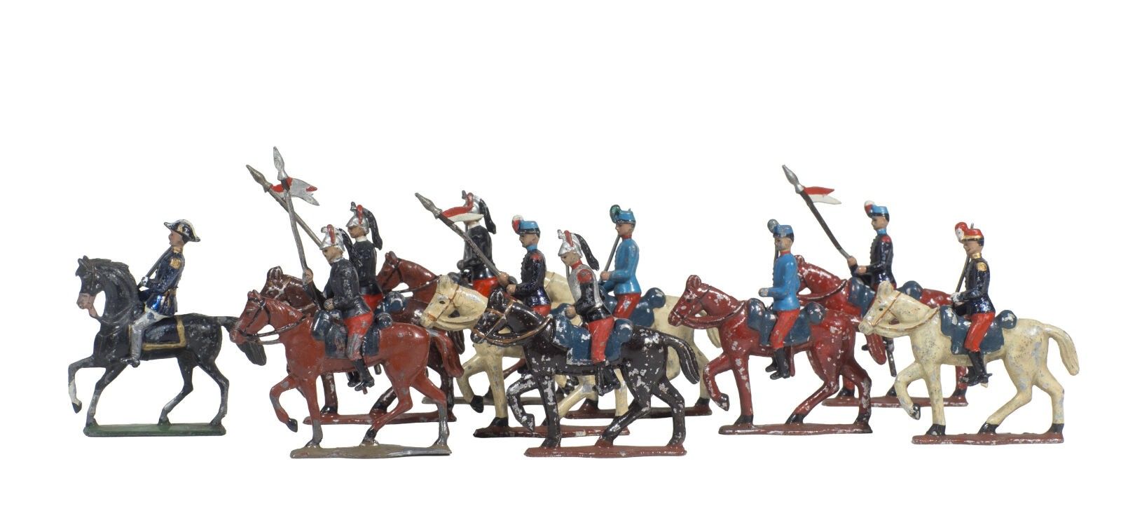 Third Republic. Half round riders in the C.B.G. Mignot style. General, Chasseurs, Saint-Cyr and Dragons (9 pieces). Condition of use.