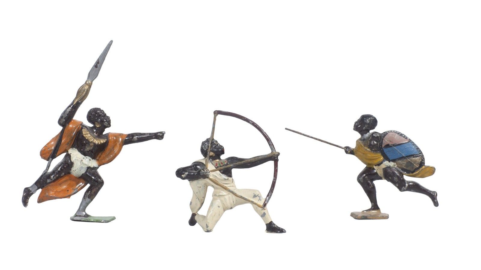 G.M. The Africans /3. In 60 mm. Warriors with bows, assegais and shields. (3 Fig.). B.E.