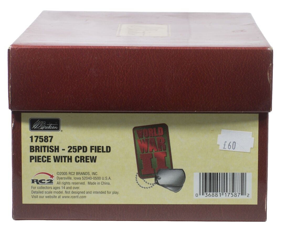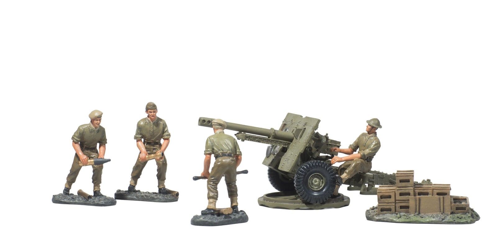 William Britain. Second World War. British artillery. 25 pound gun with servants. Set sold out. Ref. 17587 (4 Fig. + gun and ammunition). In box. T.B.E.