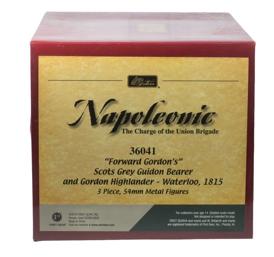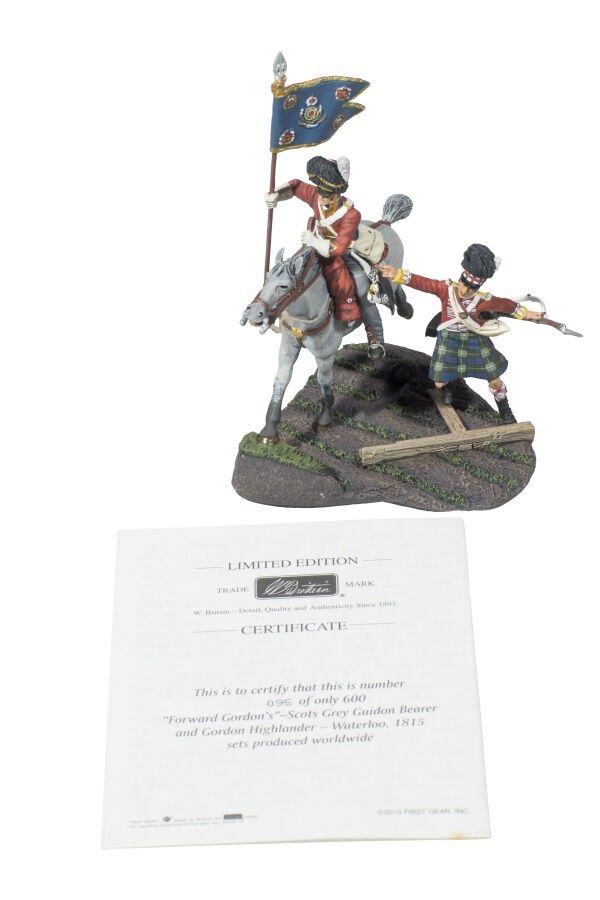 William Britain. 1st Empire. Scots Grey and Gordon Highlander. Out of print set called "Forward Gordon's" limited edition numbered 095/600 with certificate. Ref. 36041. (2 Fig. + decoration). Brand new in box.