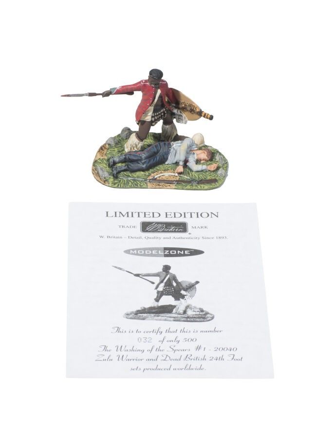 William Britain. Zulu War 1879 /1. Modelzone Exclusive. Sold out set called "The Washing of the Spears". Limited edition numbered 032/500 with certificate. Ref. 20040. (2 Fig. on set). Brand new in box.