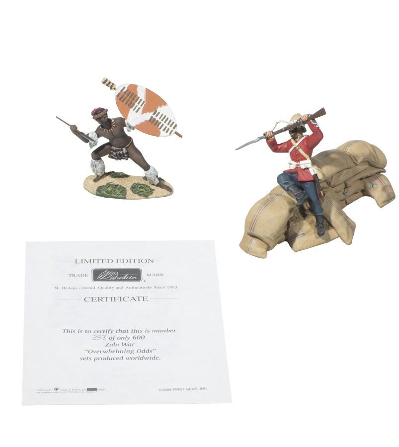 William Britain. Zulu War 1879 /2. Out of print set named "Overwhelming Odds" in limited edition numbered 293/600 copies with certificate. Ref. 20028. (2 Fig. with decoration). Brand new in box.