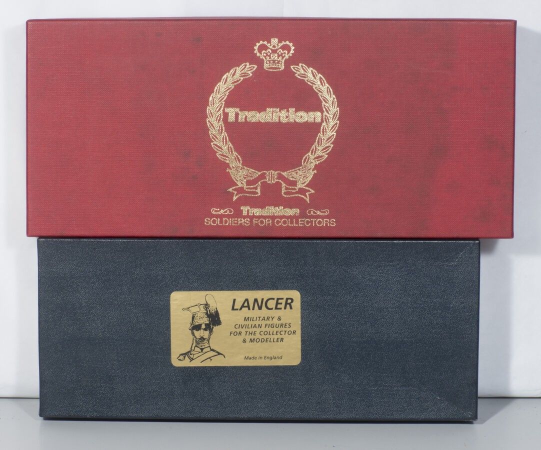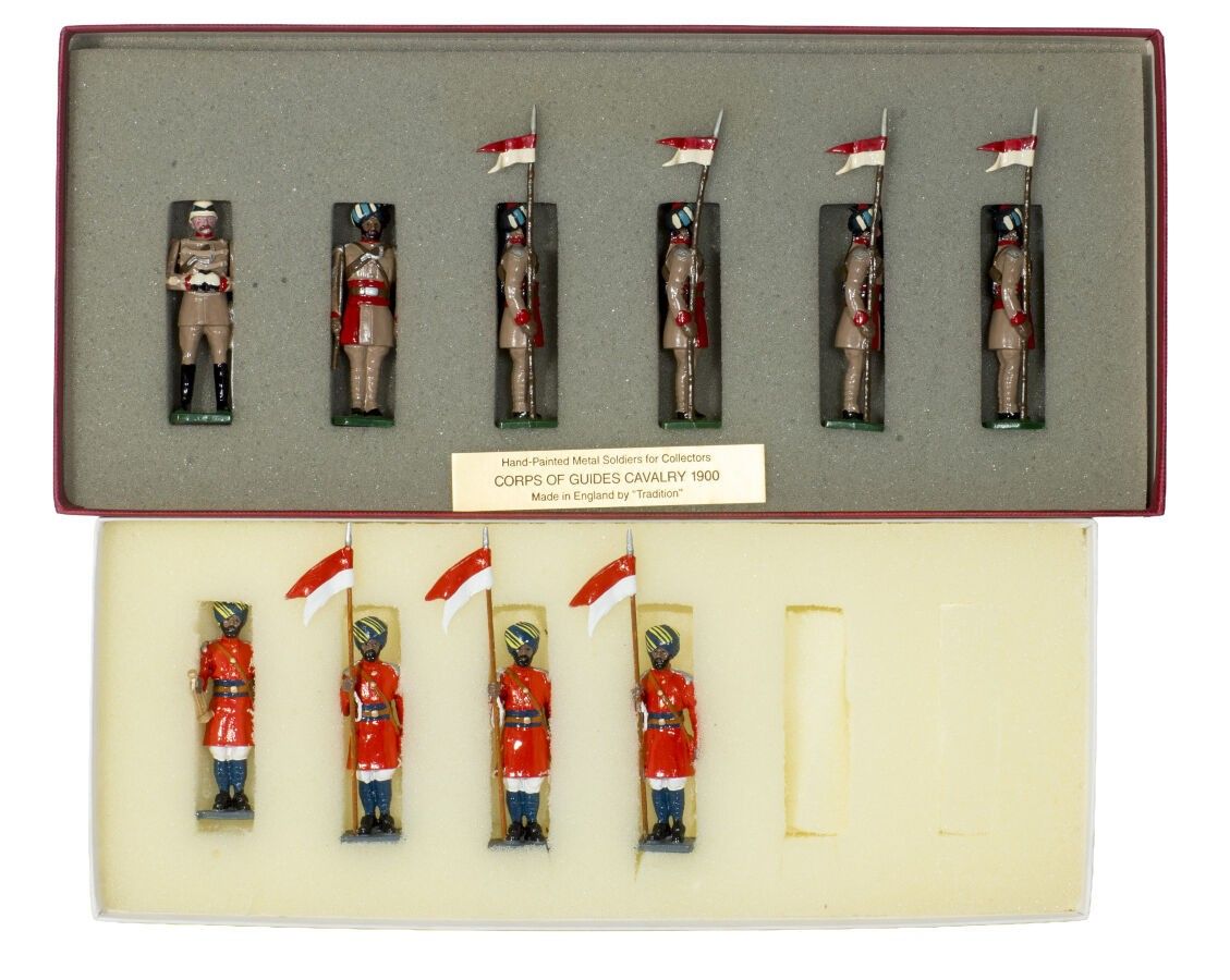 Tradition. 1900. Corps of Indian Guides cavalry. Officer, Sergeant and 4 Lancers. Sets sold out. Ref. 44 in box + one incomplete Lancer box with 4 Bengal Lancers (10 Fig.). T.B.E.