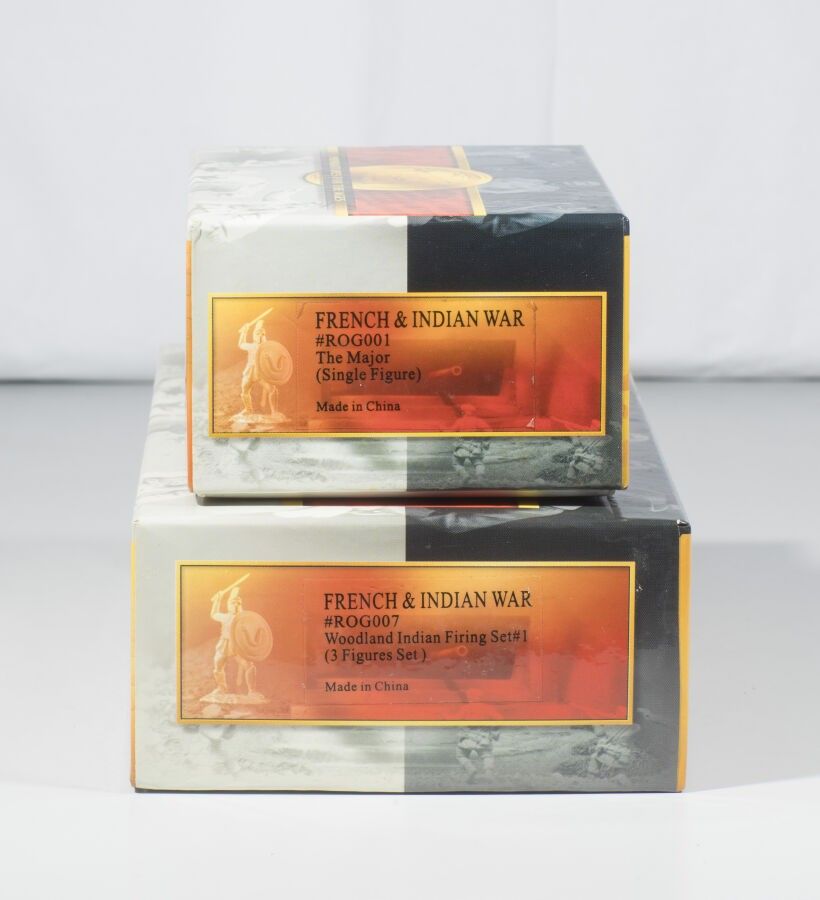 Conté. 1754-63 French & Indian war /2. Major Rogers against 3 Woodland Indians. Sets sold out. Ref. ROG001 and ROG007. (4 Fig.). In 2 boxes. T.B.E.