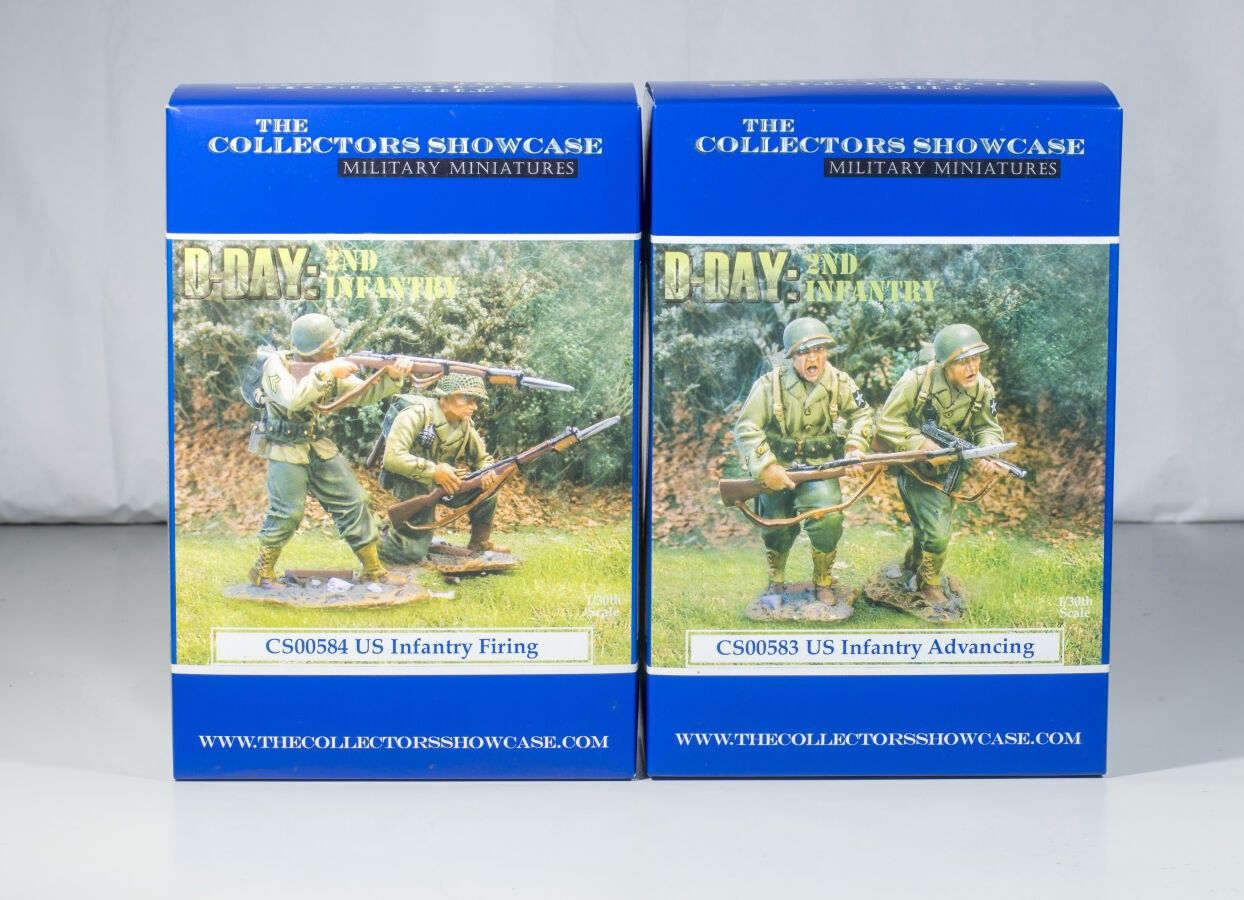 Collectors Showcase. WW2. U.S. Infantry G.I. Americans advancing and firing. Sets sold out. Ref. CS00583 and CS00584 (4 Fig.). 2 new boxes.
