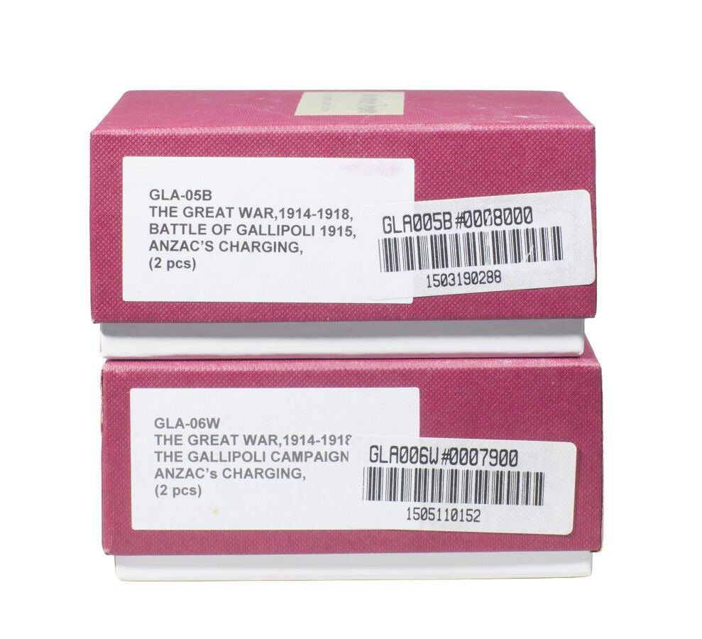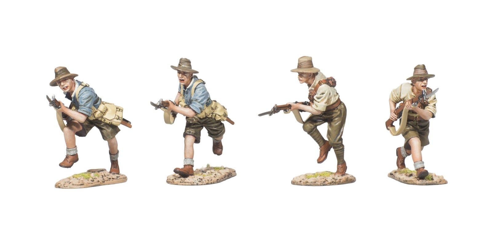 John Jenkins. 1915. Gallipoli campaign /2. Australian soldiers charging. Sets sold out. Ref. GLA-05B and GLA-06W (4 Fig.). 2 new boxes.